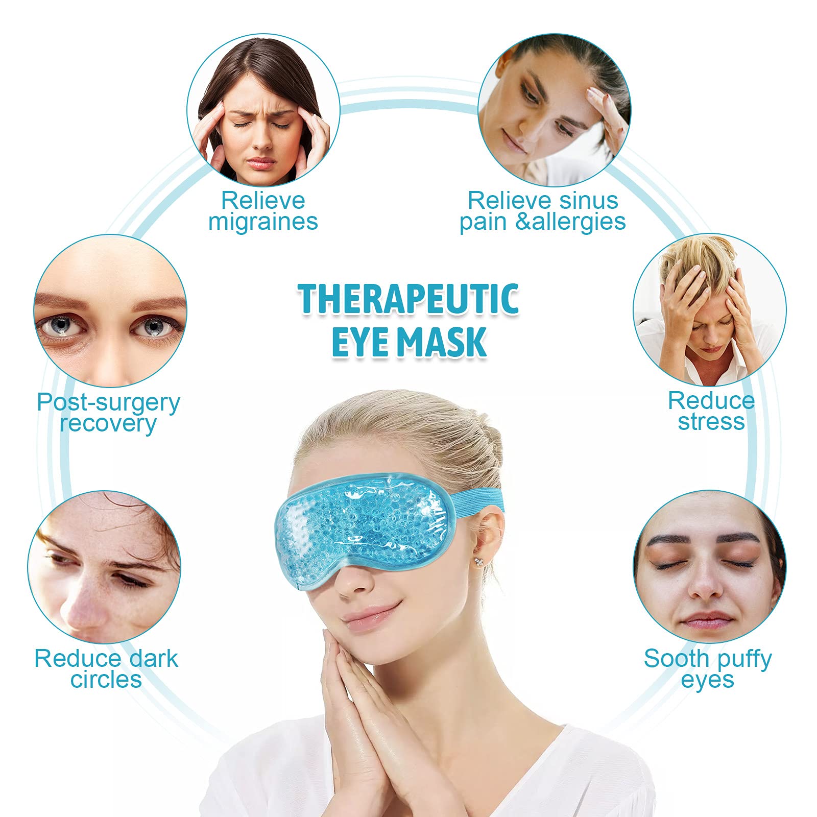 - QUICK RELIEF: Reusable cooling eye masks are great for relieving swelling and puffiness, dry eyes, headaches, migraines, sinus pain and stress. Reduce puffiness caused by poor nighttime sleep or late nights, or relieve tired eyes from staring at a computer all day.