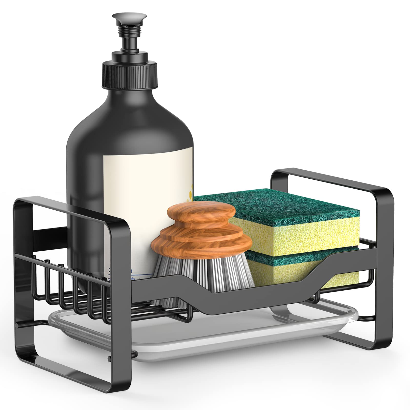 - Original Kitchen Storage & Organization Accessories – Kitchen Sink Caddy Sponge Holder,Organizer for Soap Brush Dispenser,Countertop Sink Caddy Organizer with Removable Drain Tray by Kontoyo