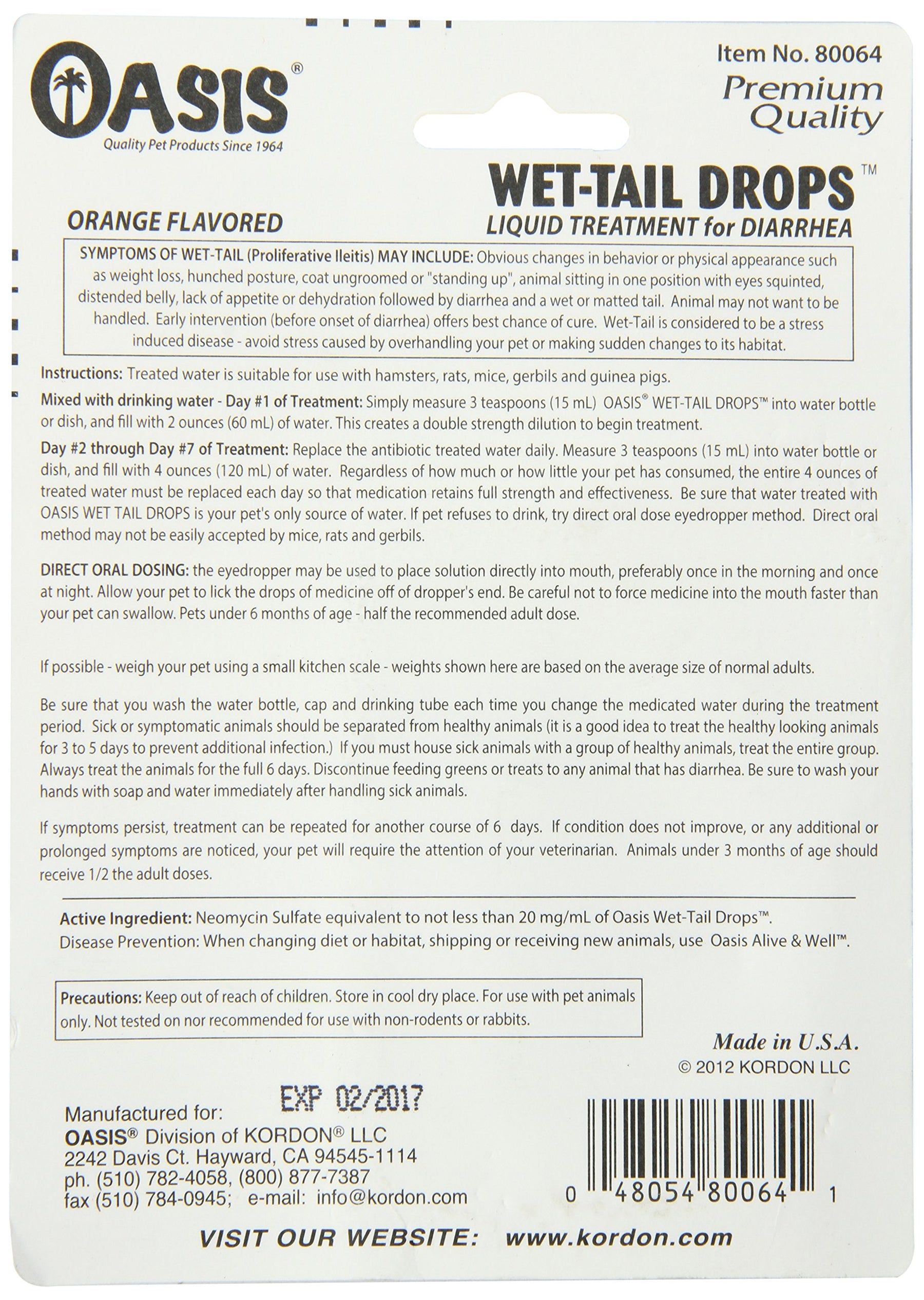 - Original Diarrhea Relief – Oasis #80064 Wet Tail Drops- Liquid Treatment for Diarrhea, 1-Ounce by Kordon