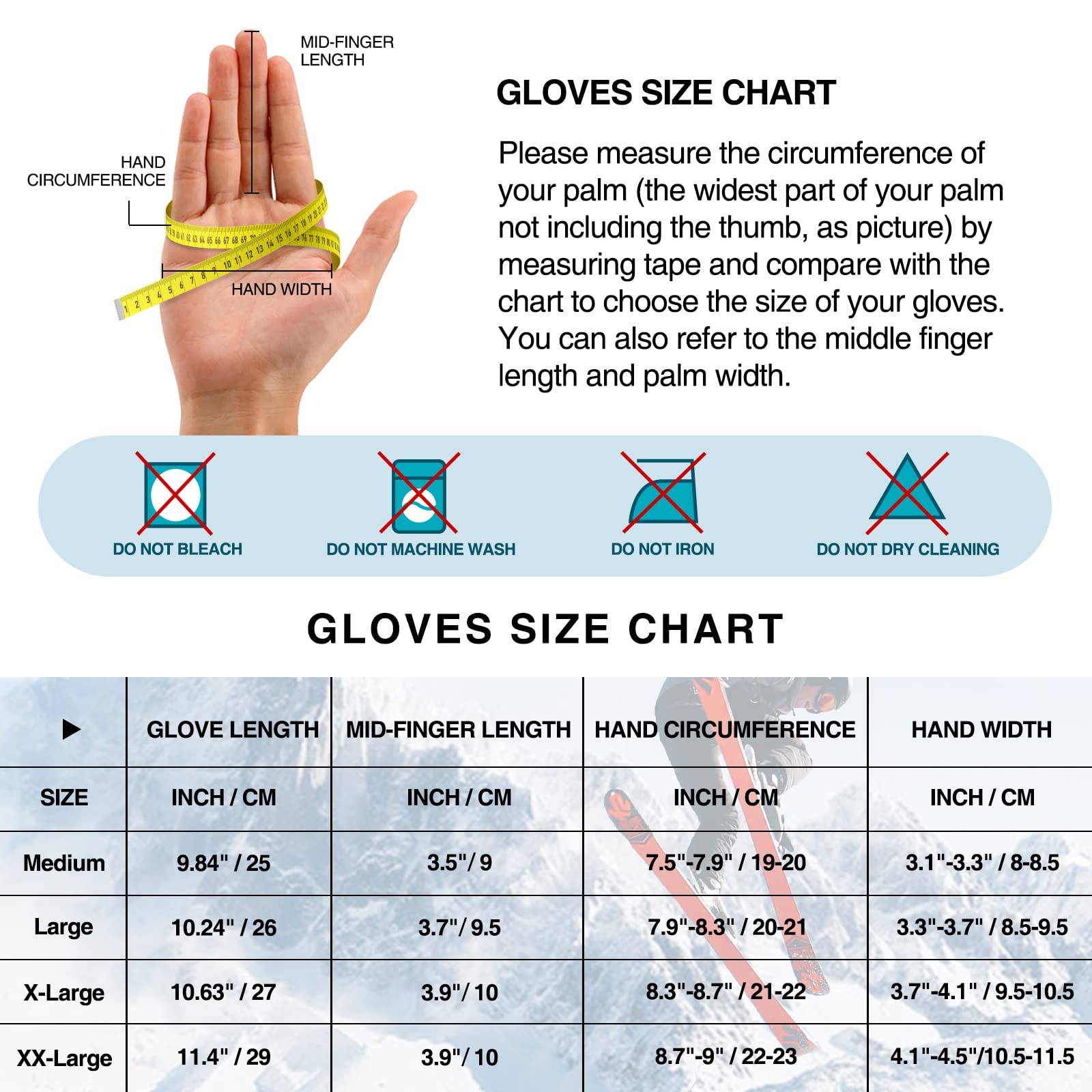 - Waterproof, Windproof & BreathableEquipped with two-layer waterproofer- high density nylon and breathable TPU, our thermal gloves can offer you the double protection against the water. These materials are proved to do a great job in keeping moisture out and no sweat staying inside so you can feel free to wear these gloves during activities that work in the rainy or snowy days. The built-in elastic straps at the wrist will also block the cold blast out and lock the warmth even in windy days.