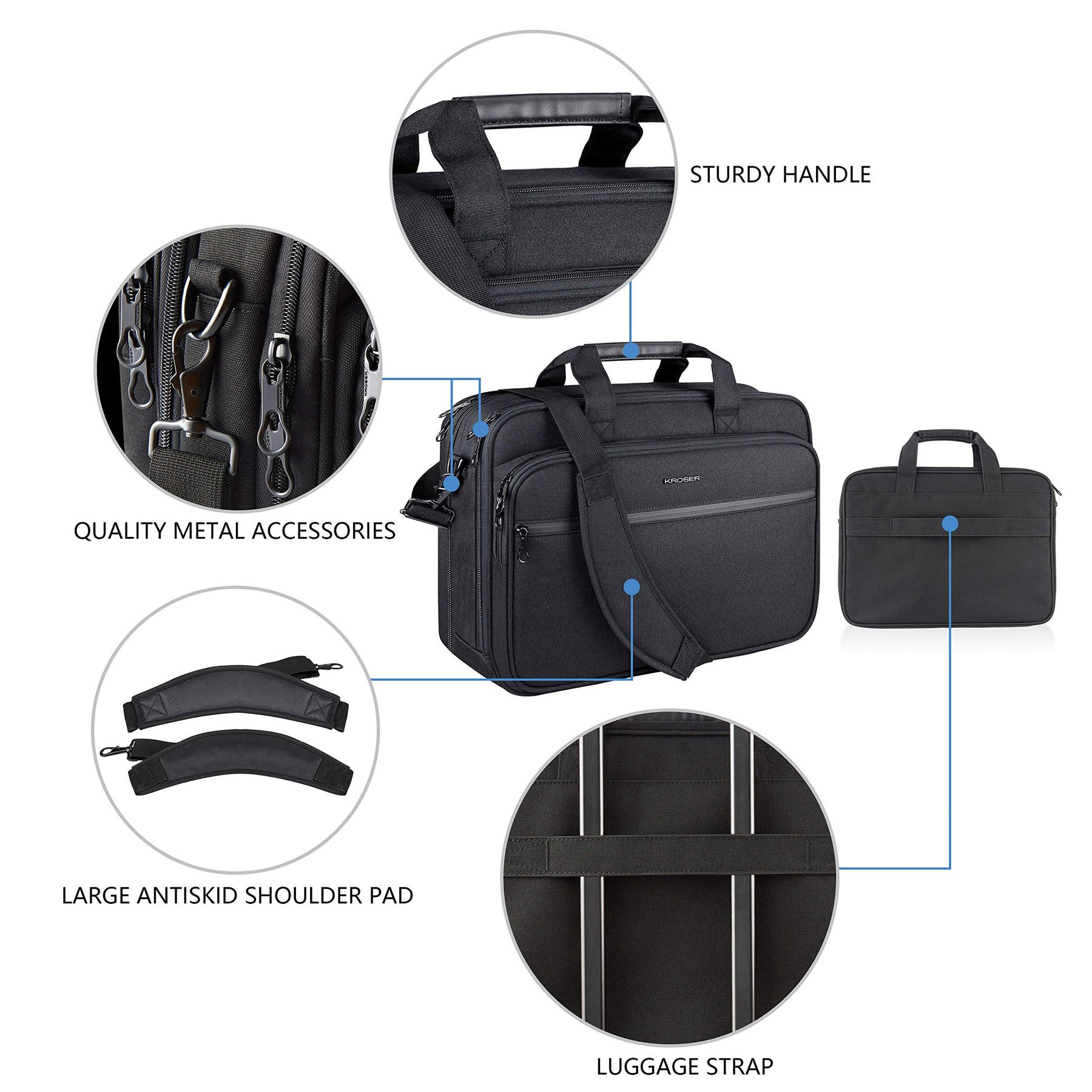 - Original Briefcases – Laptop Bag Premium Laptop Briefcase Fits Up to 17.3 Inch Laptop Expandable Water-Repellent Shoulder Messenger Bag Computer Bag with RFID Pockets for Travel/Business/Men/Women-Black by KROSER