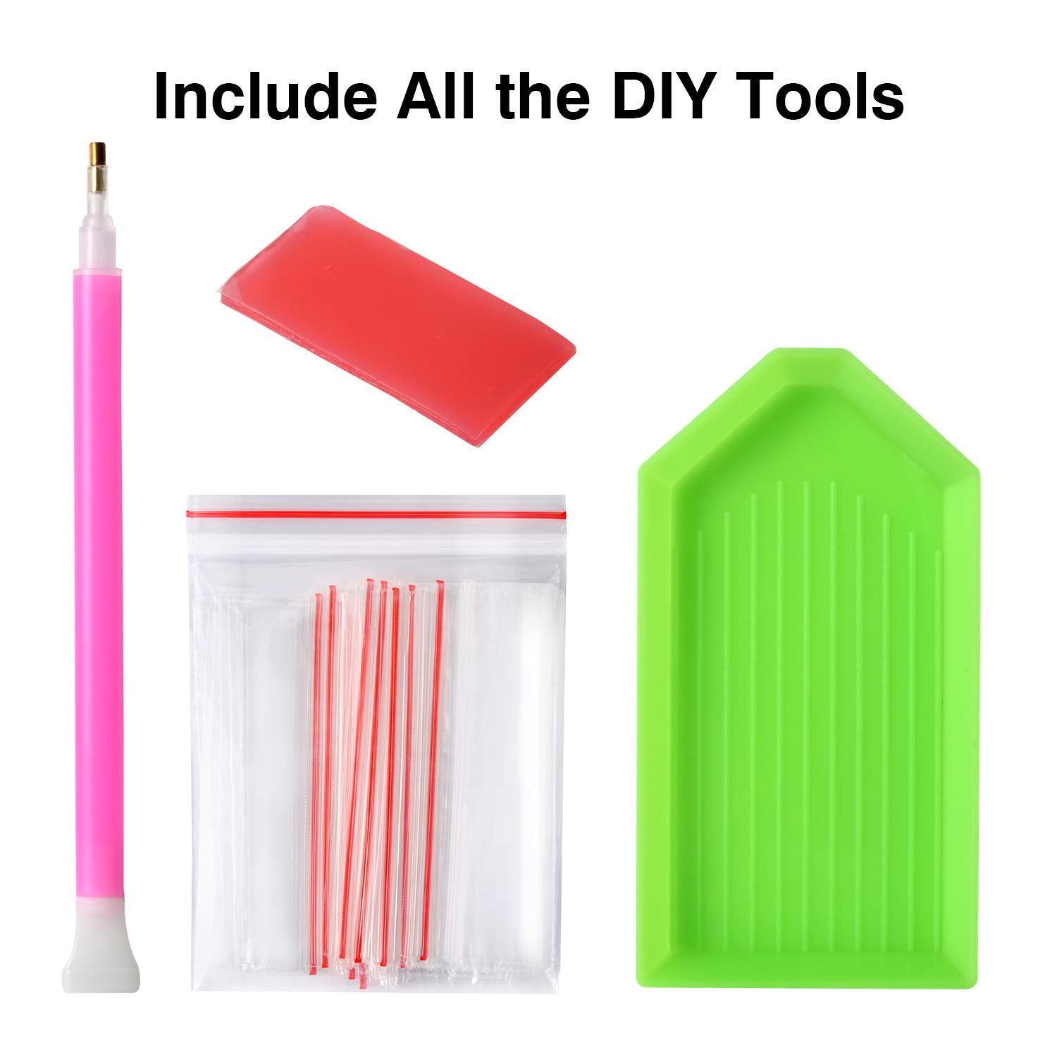 - PACKAGE INCLUDES ALL TOOL: Printed HD Oil Canvas, Enough Diamonds beads, Glue, Diamond Dots Pen. Tray.