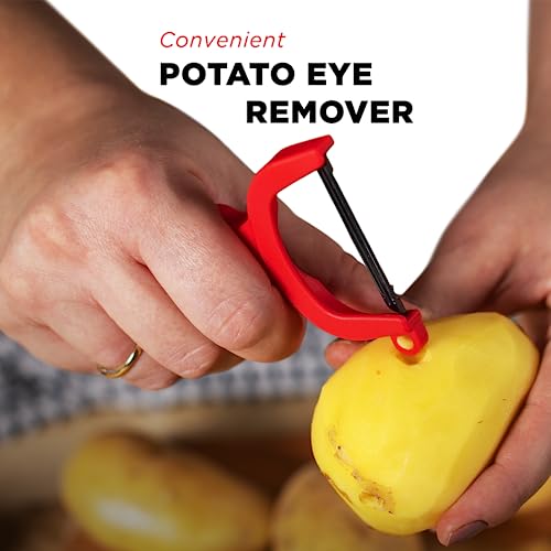 - Incorporates a convenient potato eye remover and is suitable for right and left-handed use