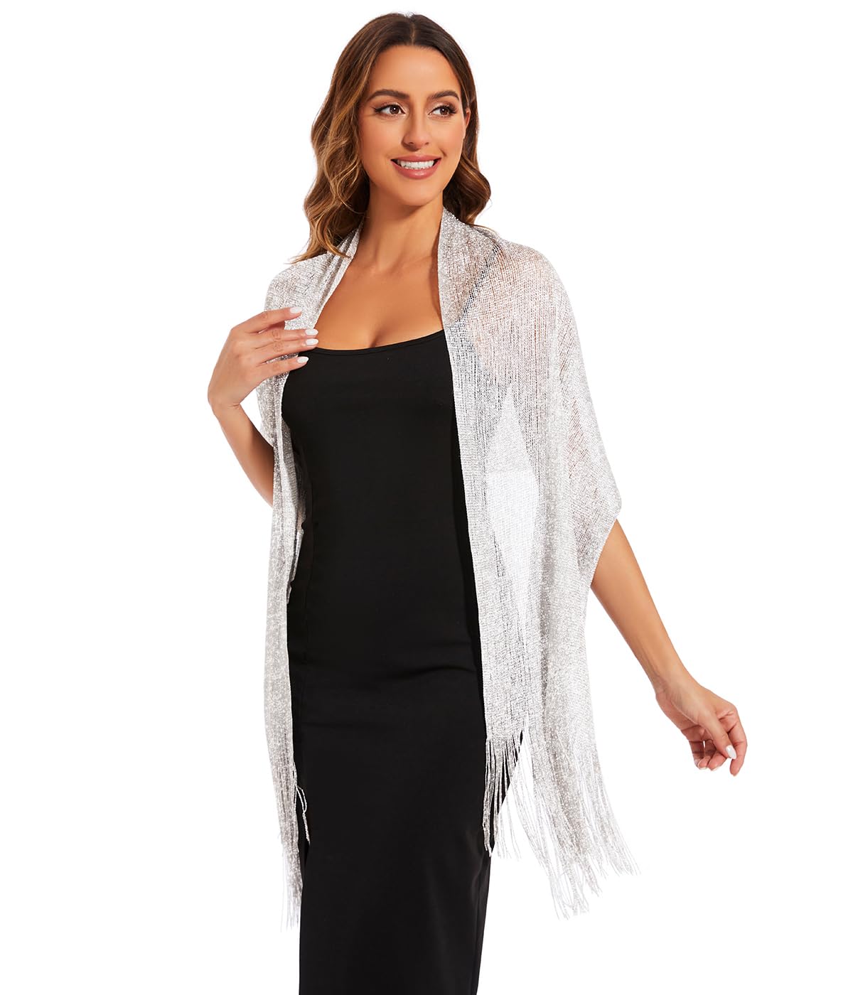 - Original Wraps & Pashminas – Sparkling Metallic Shawls and Wraps with Buckle,Women Shawls and Wraps for Evening Dresses,Silver by KUNINDOME