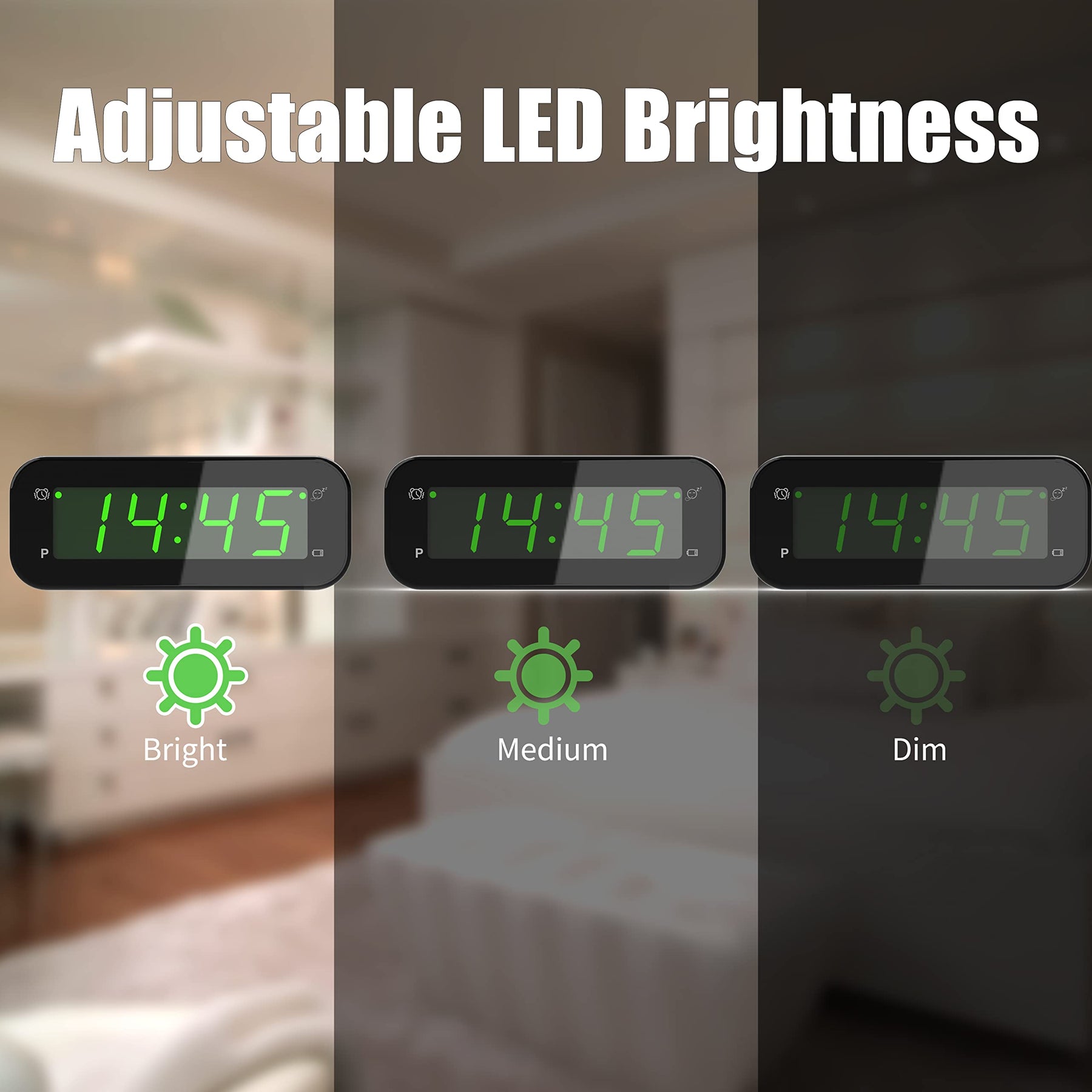 - Adjustable Brightness - Press the TIME SET button for 2 second and change the 3-level brightness, low/ middle/ high. The clock will dim and be on night-mode automatically during 8:00pm--6:00am. No blinding lights or any annoying sounds disturb your sleep, create an peaceful and comfortable environment for sleep.