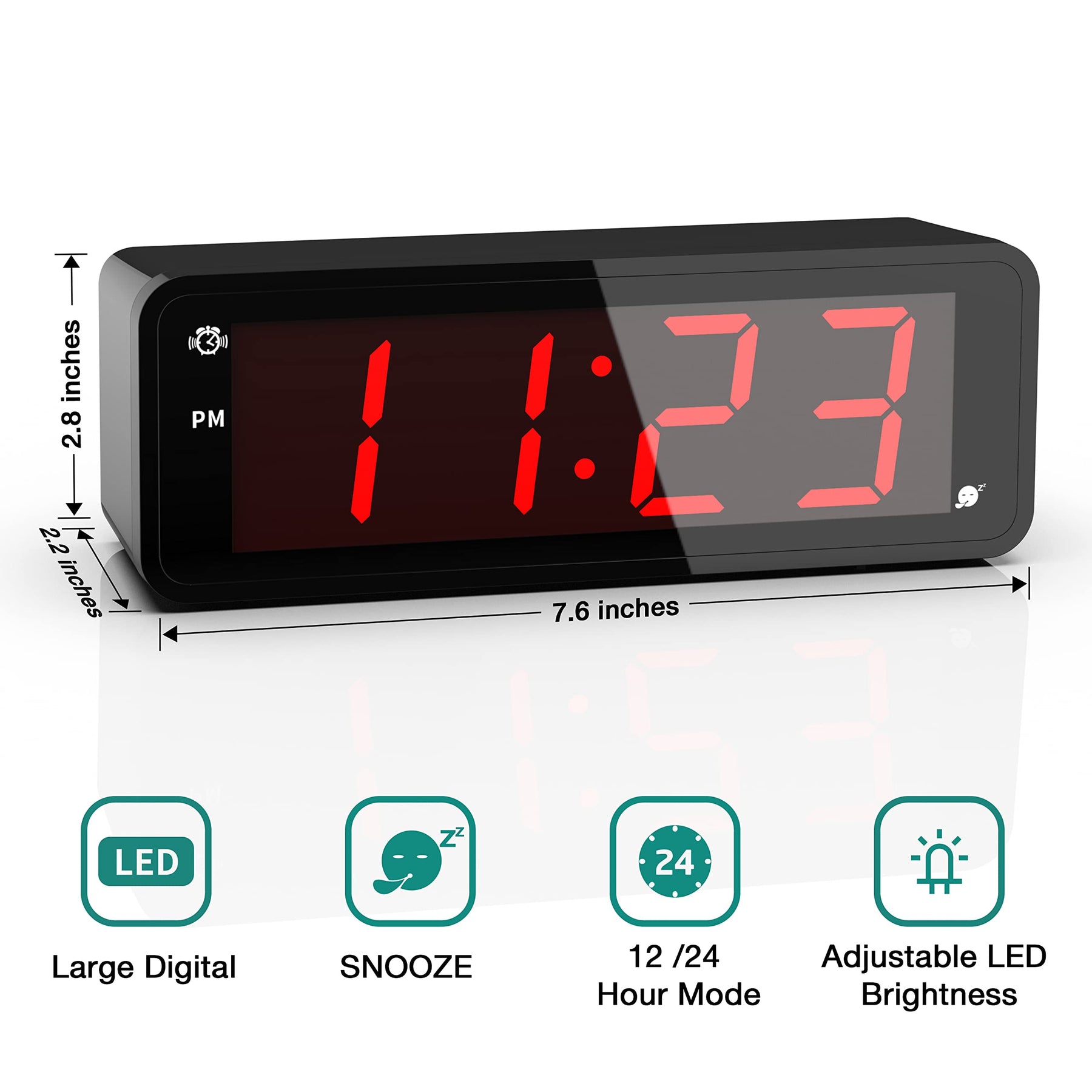 - Large LED Time Display - 1.8 tall red number 24hour light LED time display, make the time can be read clearly visible day and night, even in dark. 1.8'' tall LED number and they are showing hour and minute. Even the elderly and the dementia patients can recognize the time easily.