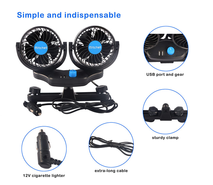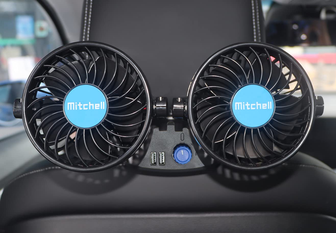 - Original Cooling Fans – 12 Volt Car Fan for Back Seat, Portable Car Seat Fan car essentials, Headrest 360°Rotatable Dual Head Cooling Fan with 2 USB Charging Port & Cigarette Lighter Plug for Vehicles, SUV, RV, Boat by KWYZ