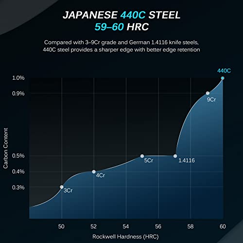 - ULTRA-SHARP BLADE: Sharpened to a 13 to 15 degree edge, this kitchen knife delivers exceedingly precise cuts through large vegetables, meat, fish, fruit, and more with negligible resistance; the steel’s 59-60 HRC strength provides unrivaled performance, superior corrosion resistance, and exceptional edge retention