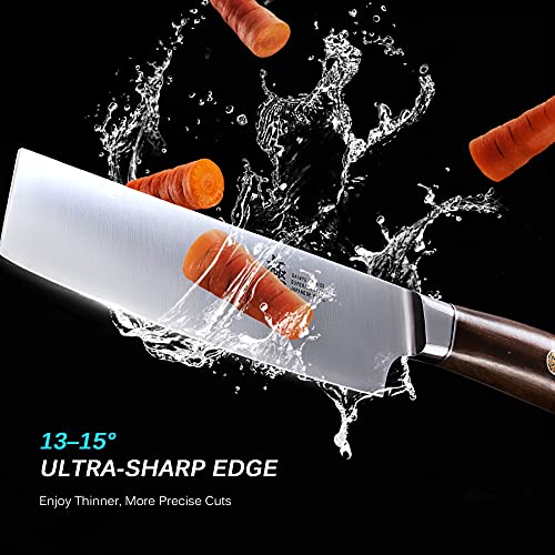 - Original Usuba & Nakiri Knives – 7 Inch Nakiri Knife - Daimyo Series - Vegetable Cleaver with Ergonomic Rosewood Handle, & Mosaic Pin - Japanese 440C Stainless Steel Kitchen Knife with Sheath & Case by KYOKU