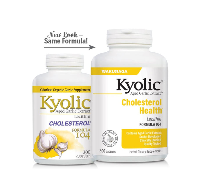 - Original Garlic – Aged Garlic Extract Formula 104 Cholesterol Health, 300 Capsules (Packaging May Vary) by Kyolic