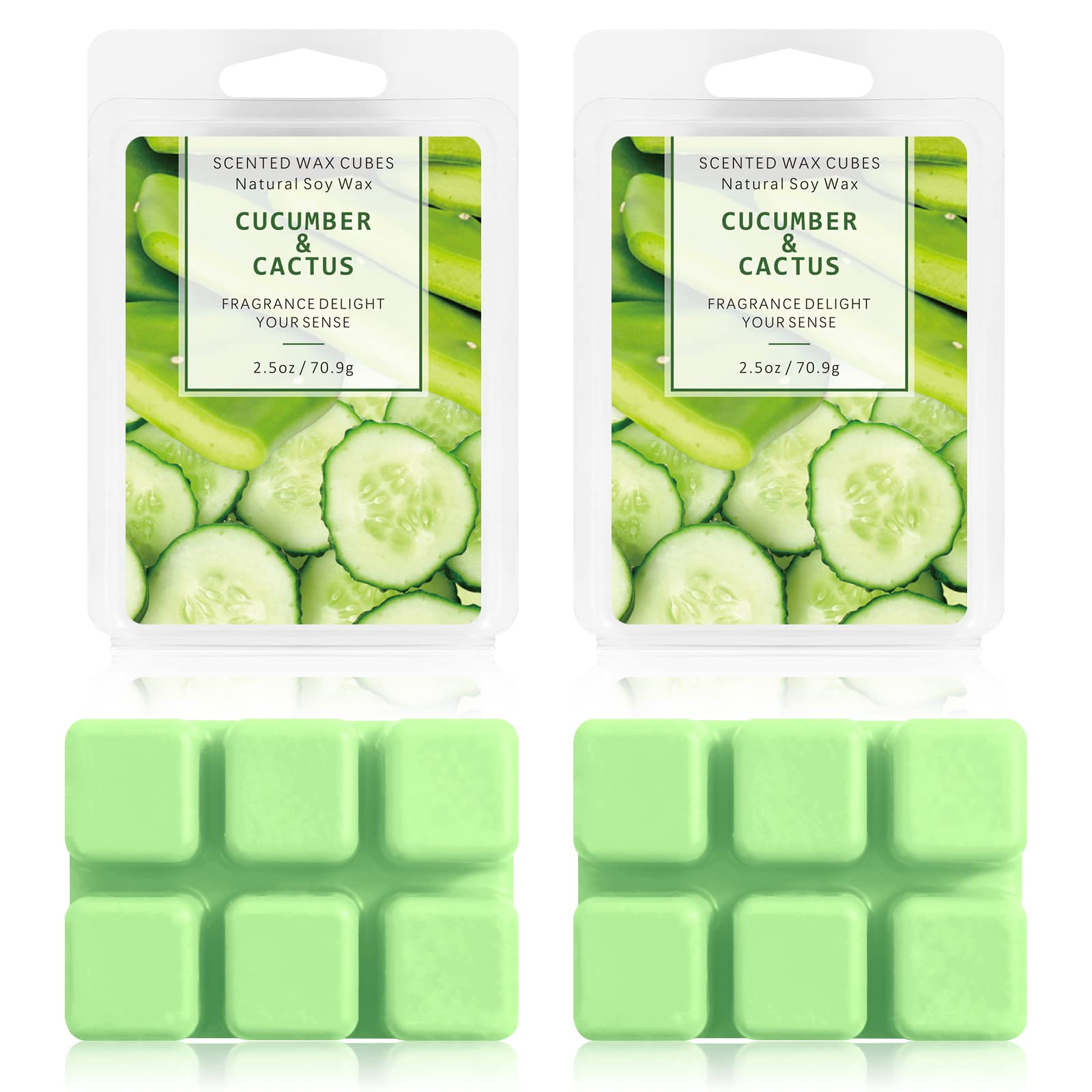 - [SCENTED WAX MELTS FOR WARMER]The package include 2 packs Cucumber & Cactus Wax Melts. Each is 2.5 ounces with 6 cubes. It can release a light, fresh scent for a long time when melted in a wax melts warmer.