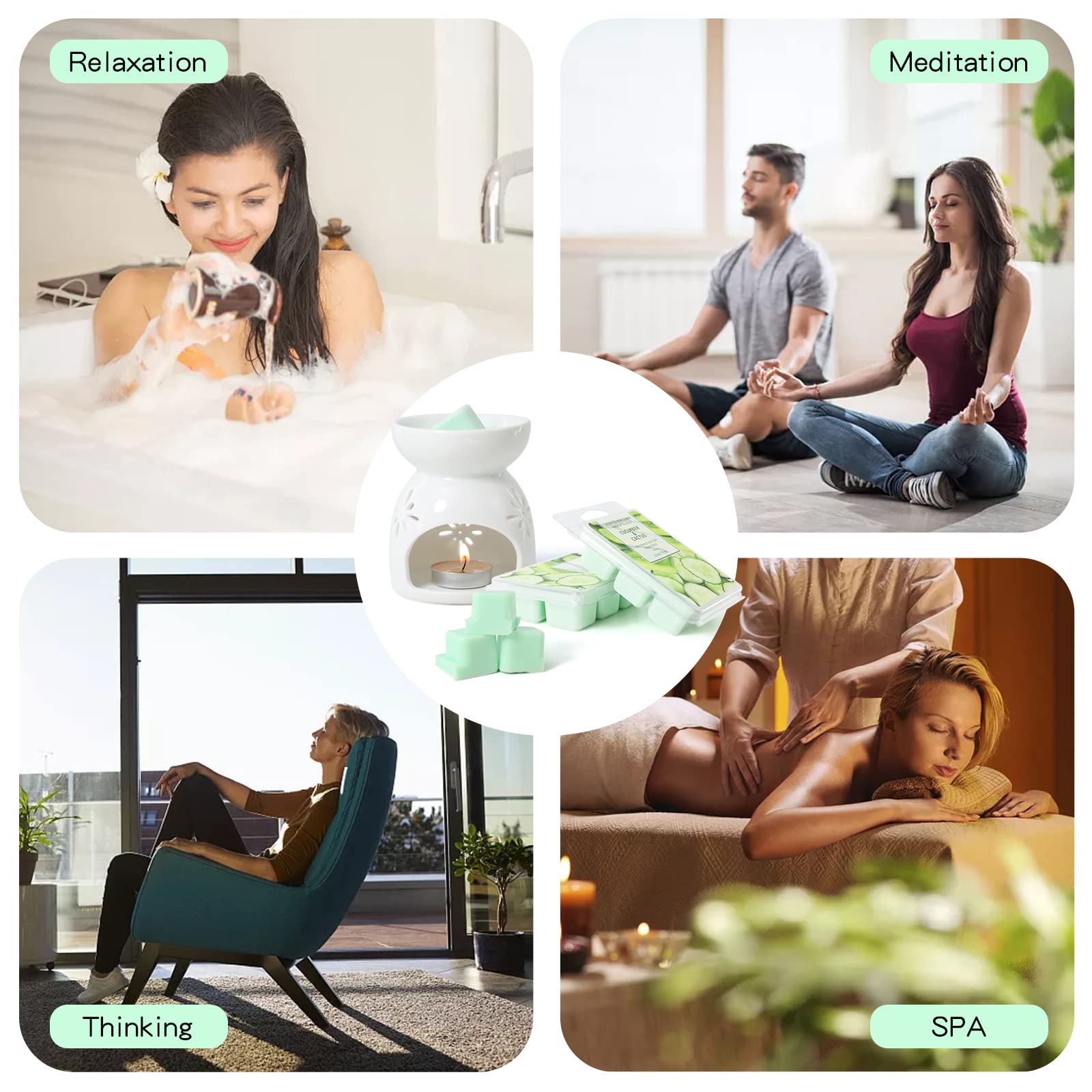 - [CANDLE WAX MELTS]Wax melts are compatible with a variety of burners. Simply add one or two cube to your wax warmer, The fragrance can be released continuously which is ideal for Weddings, Parties, Spa, Meditation etc.
