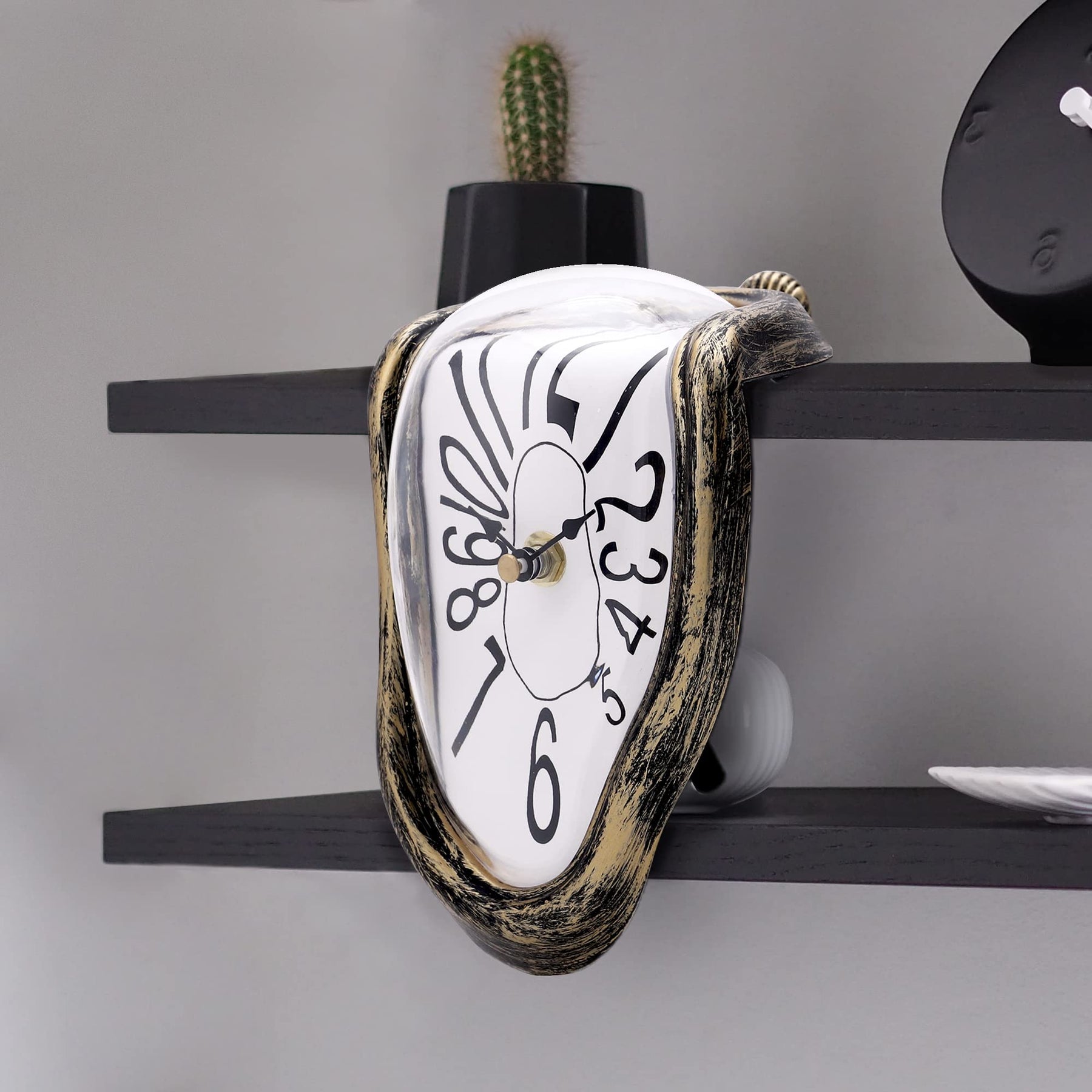 - Original Desk & Shelf Clocks – Silent Melting Clock Antique Gold, Salvador Dali Watch Melted Clock, Surrealism Dripping Clock, Funny Creative Gift Shelf Clock for Home Kitchen Office Desk Table by Lafocuse