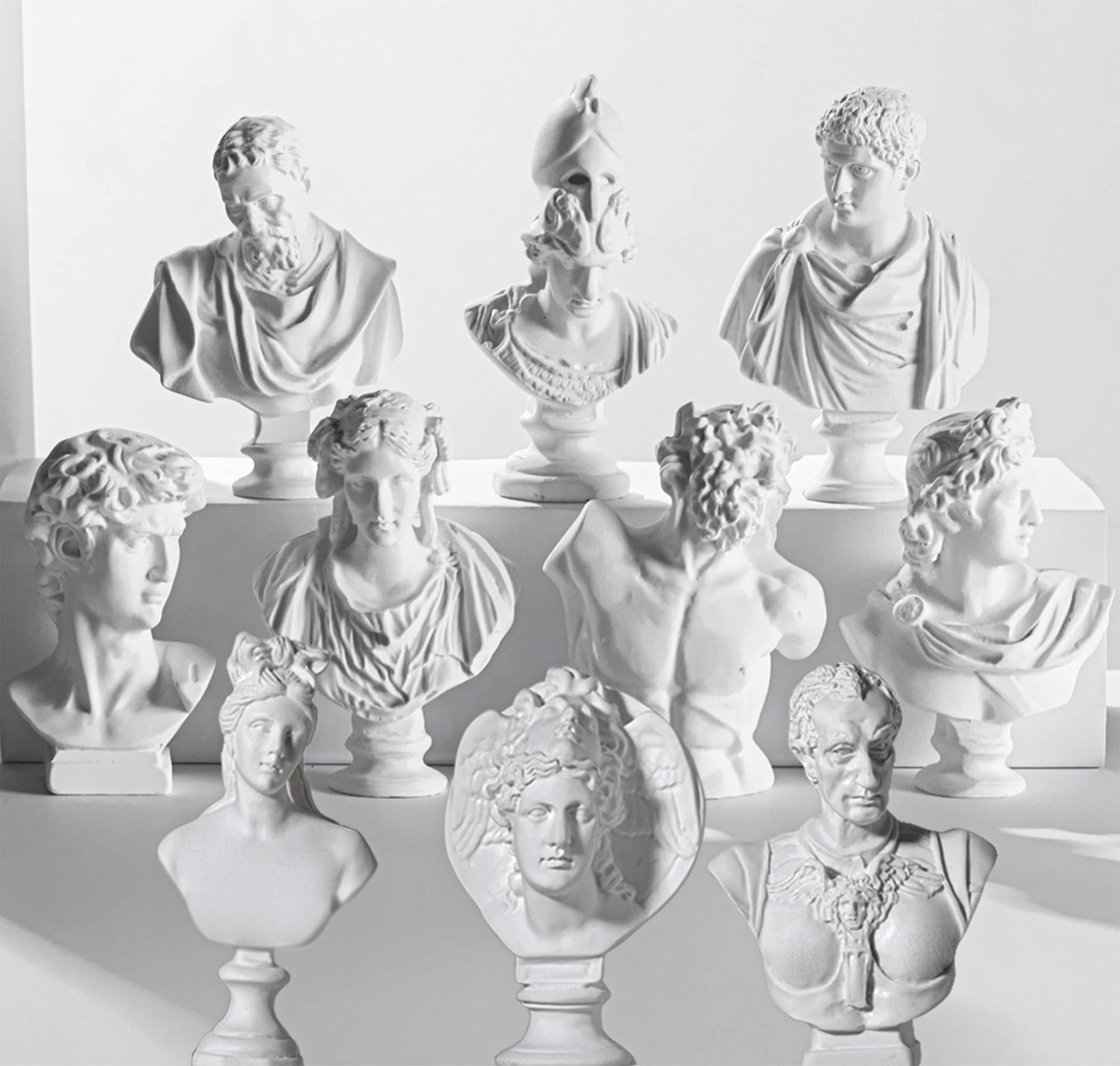 - Original Statues – Greek Bust Statue and Sculptures Set of 10 PCS Greek Bust Statue Decor Roman Resin Mini Greek Mythology Figurine Greek God Statue Bust Small for Decor/Gifts/Drawing by LAGOM HOUSE