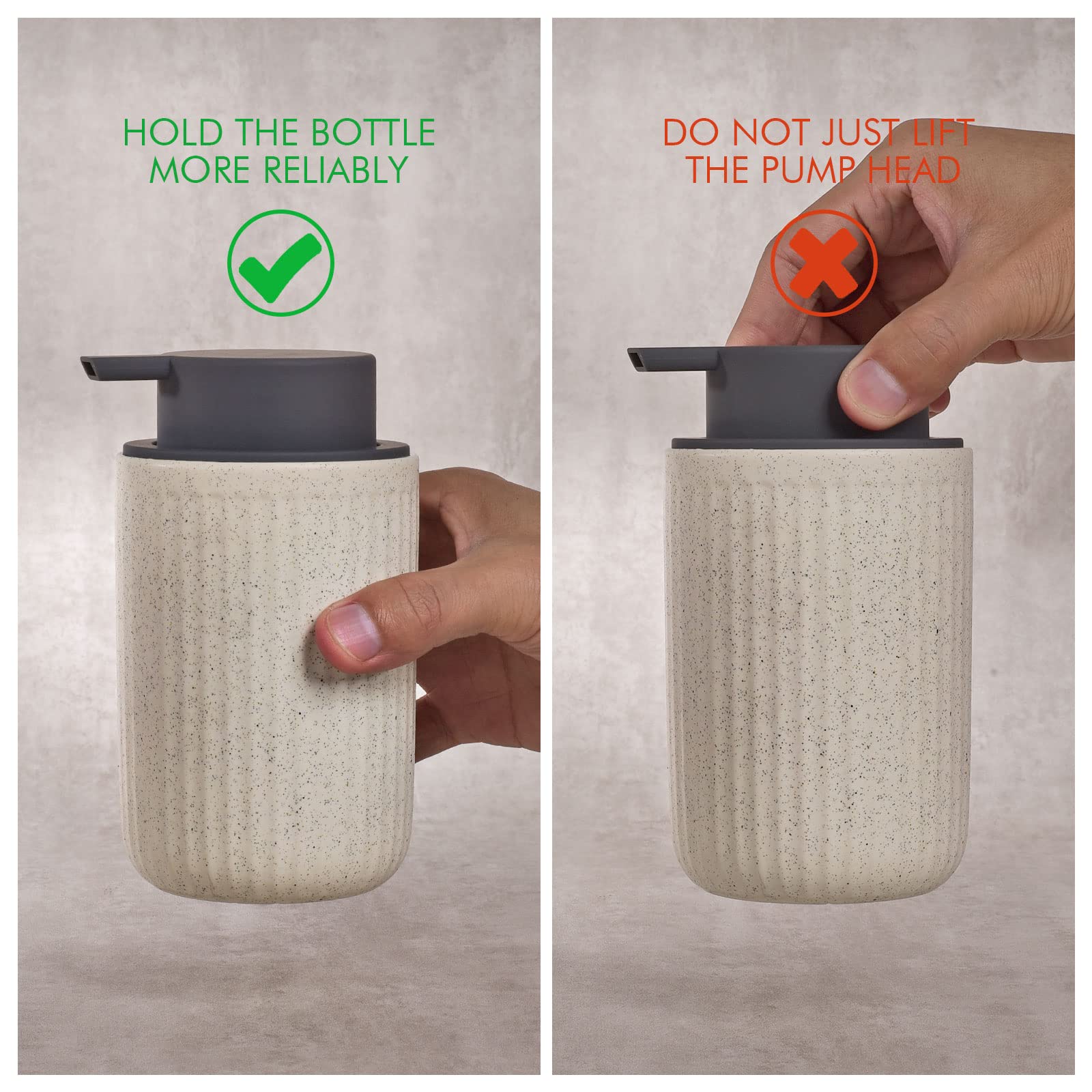 - EASY TO REFILL - the large opening of the refillable soap dispenser makes each refill clearer. The ceramic soap dispenser has a capacity of 400 ml, so it can maintain hygiene and cleanliness in the bathroom or kitchen for several weeks.
