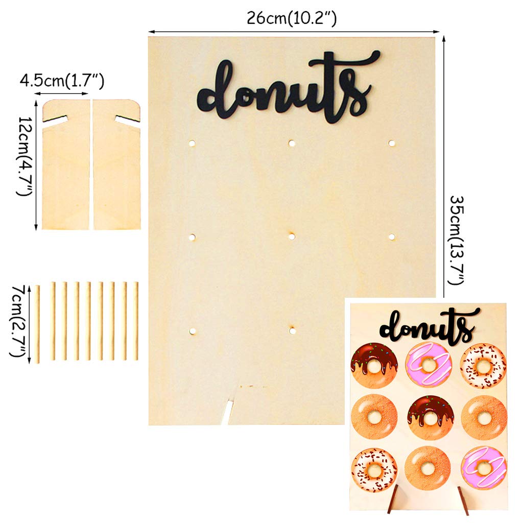 - MATERIAL: High quality nature wood. Display Wall Size:13.7inch*10.2 inch / 35cm*26cm.Included 9pcs donut pegs.