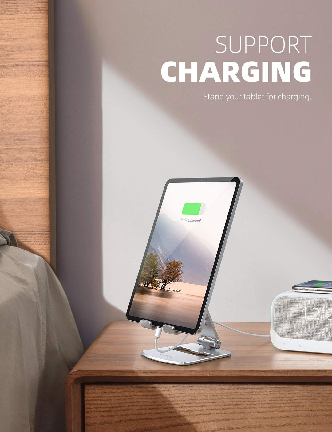 - Original Stands – Tablet Stand, Foldable Holder - Adjustable Tablet Dock, for 4.7 - 13 Tablet, Such as iPad Pro 11/10.5/12.9, Mini, Air, Galaxy Tabs, Kindle, Silver by Lamicall