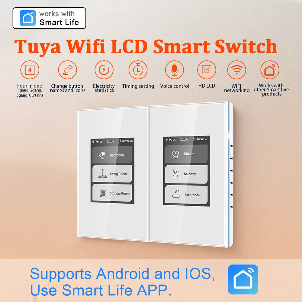 - Original Wall Controls – Tuya Smart Life LCD Smart Light Switch, Curtain/1/2/3 Gang 4-Models-in-1 WiFi Touch Smart Switch Supports Alexa & Google Home & Home Assistant, Needs Neutral Wire, No Hub Needed,White by LANBON