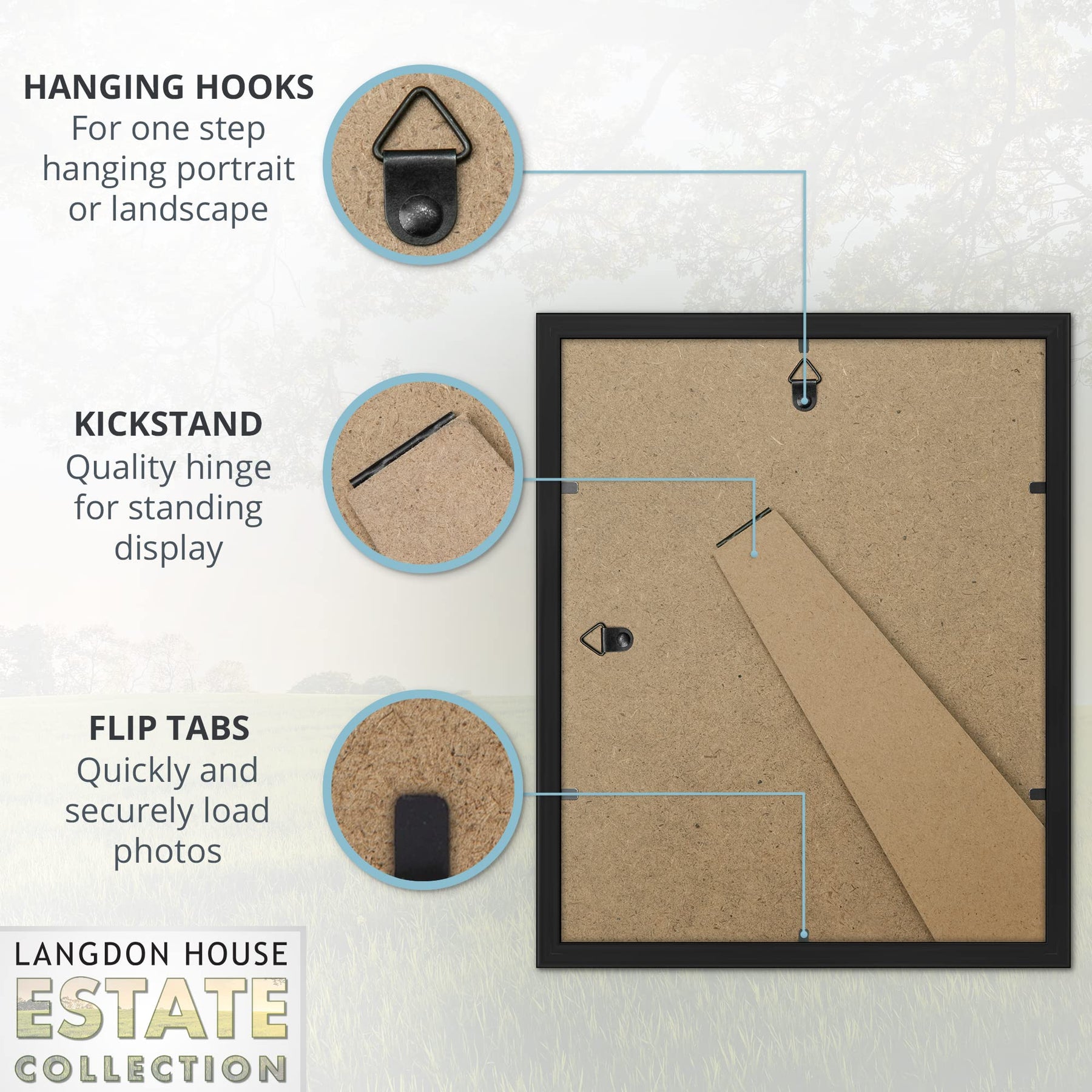 - Original Wall & Tabletop Frames – 5x7 Black Picture Frame w/Removable Mat to 4x6, Modern Step-Down Molding, Tabletop Easel Included, Estate Collection by Langdon House