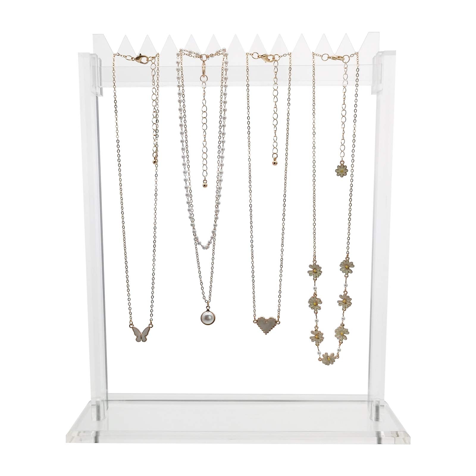 - The necklace storage stand provides plenty of storage space so you can unfold all the necklaces while keeping them tangled. You don't have to remove all the necklaces from a single hook, just to find the one you want to wear. It allows you to store and display multiple necklaces of different lengths on a single necklace display stand.