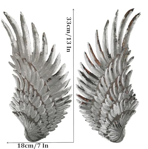 - Original Embroidered Appliqué – Large Angel Wings Sequin Patches Iron on Sew on Appliques Embroidered Motif for DIY Clothes (Silver) by Zhiheng