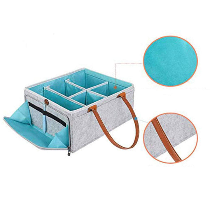 - Our baby diaper caddy is made from a blend of lightweight and soft wool with strong and durable polyester to provide you the perfect blend of style and unmatched durability. Compact grey color looks good in any places, regarded as a closest friend of your family.