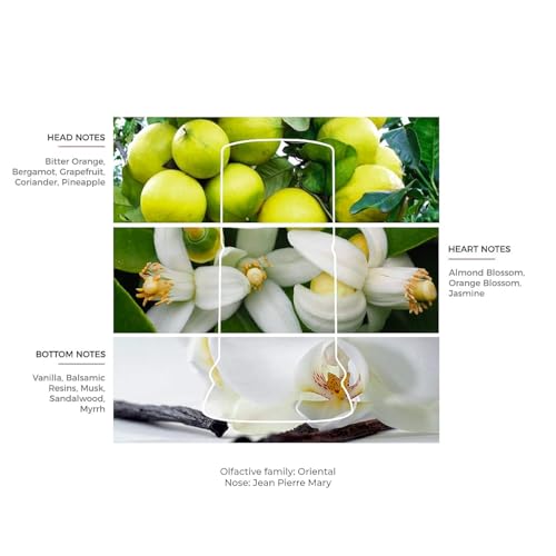 - A SEDUCTIVE, MYSTERIOUS FRAGRANCE. This spicy and minty scent opens with notes of bergamot, grapefruit and pineapple. The heart of almond blossoms and orange blossoms dries down to a woody base of vanilla, musk and sandalwood.