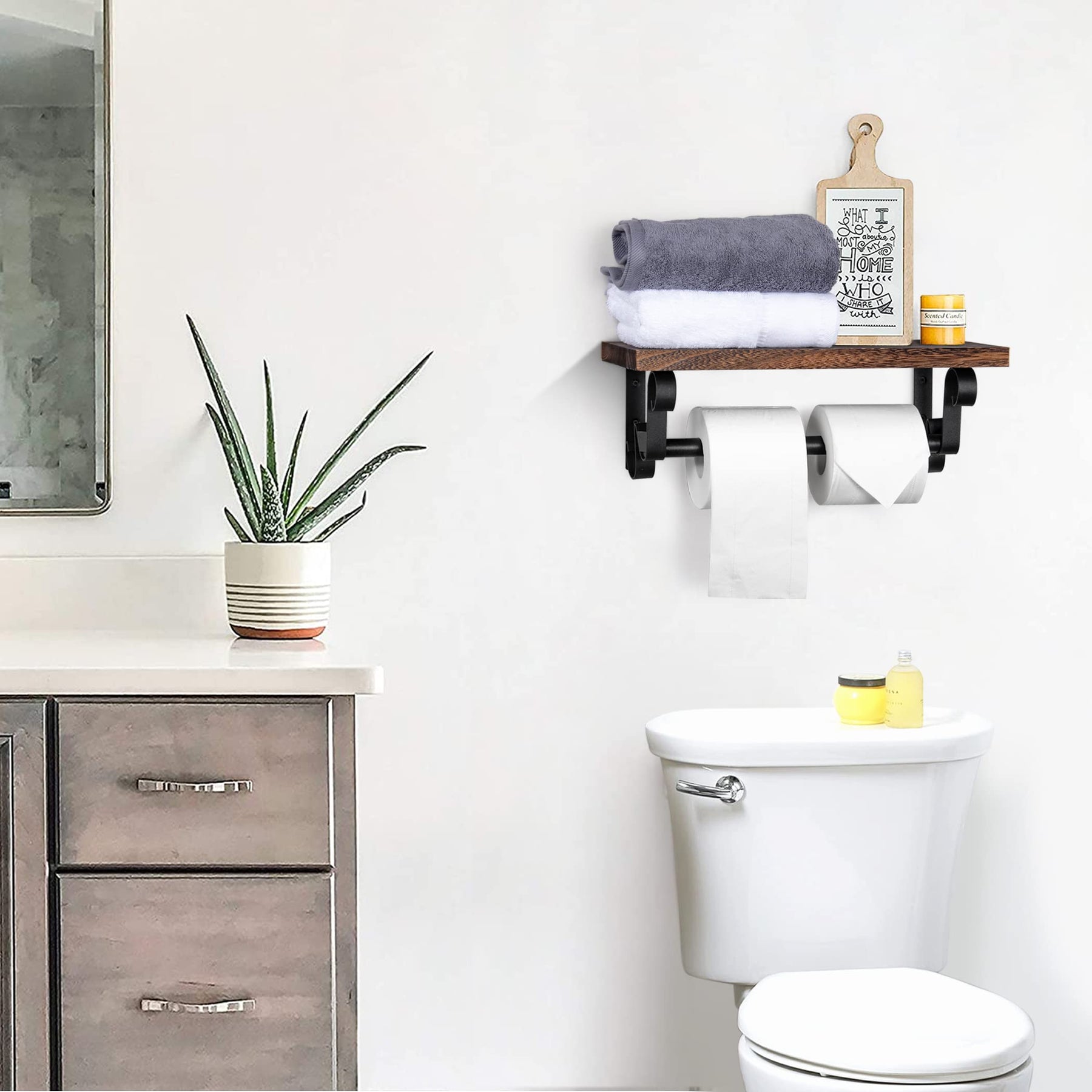 - Original Commercial Toilet Paper Holders – Lavievert Industrial Toilet Paper Holder, Double Roll Toilet Tissue Holder with Rustic Wood Shelf, Wall Mounted Pipe Toilet Paper Dispenser for Bathroom, Washroom, Kitchen - Brown by LAVIEVERT