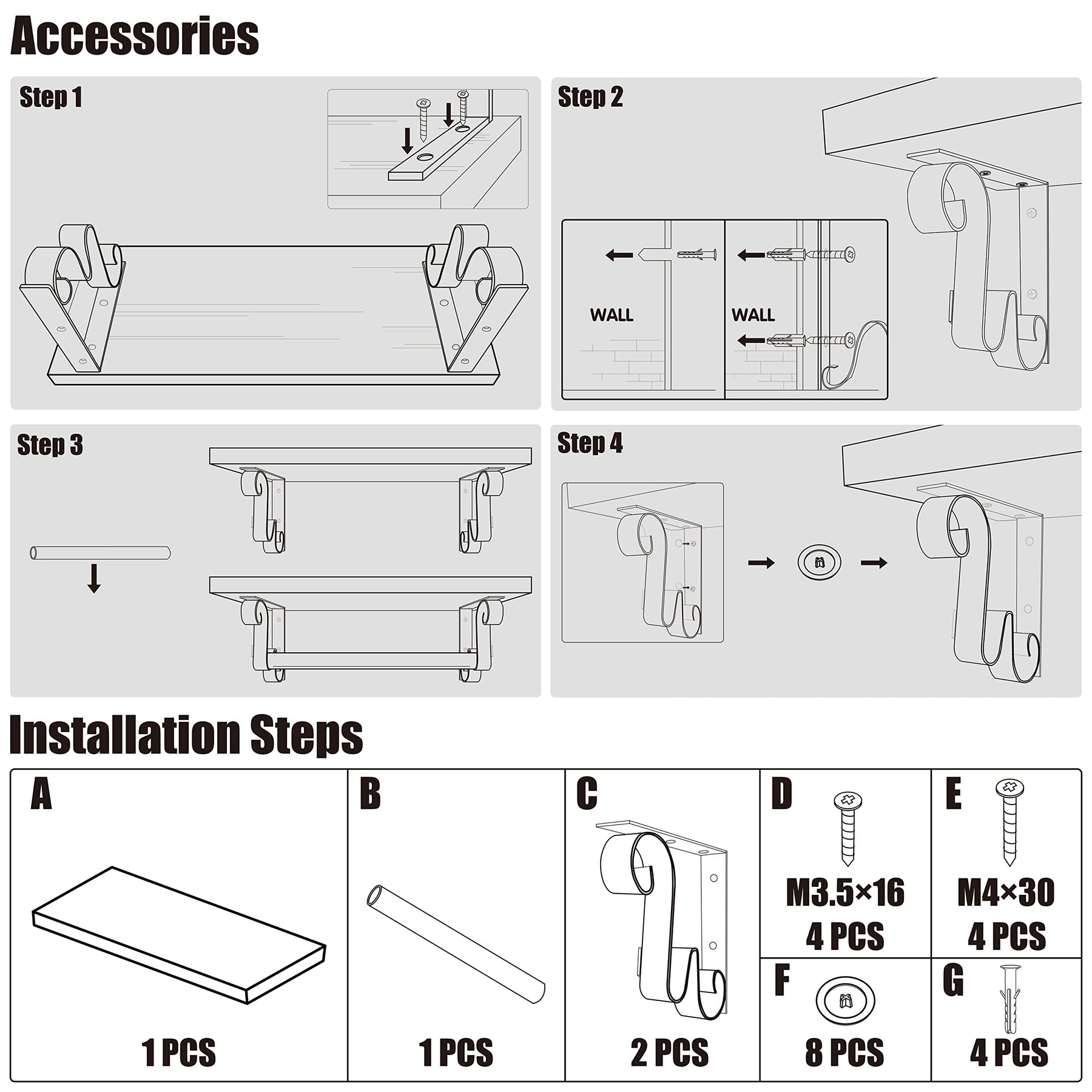 - Effortless Installation - Installation may be finished in 10 minutes under the guidance of the installation manual. Package includes pinewood board × 1, round metal pipe × 1, metal bracket × 2, installation manual × 1, screw × 1 pack.