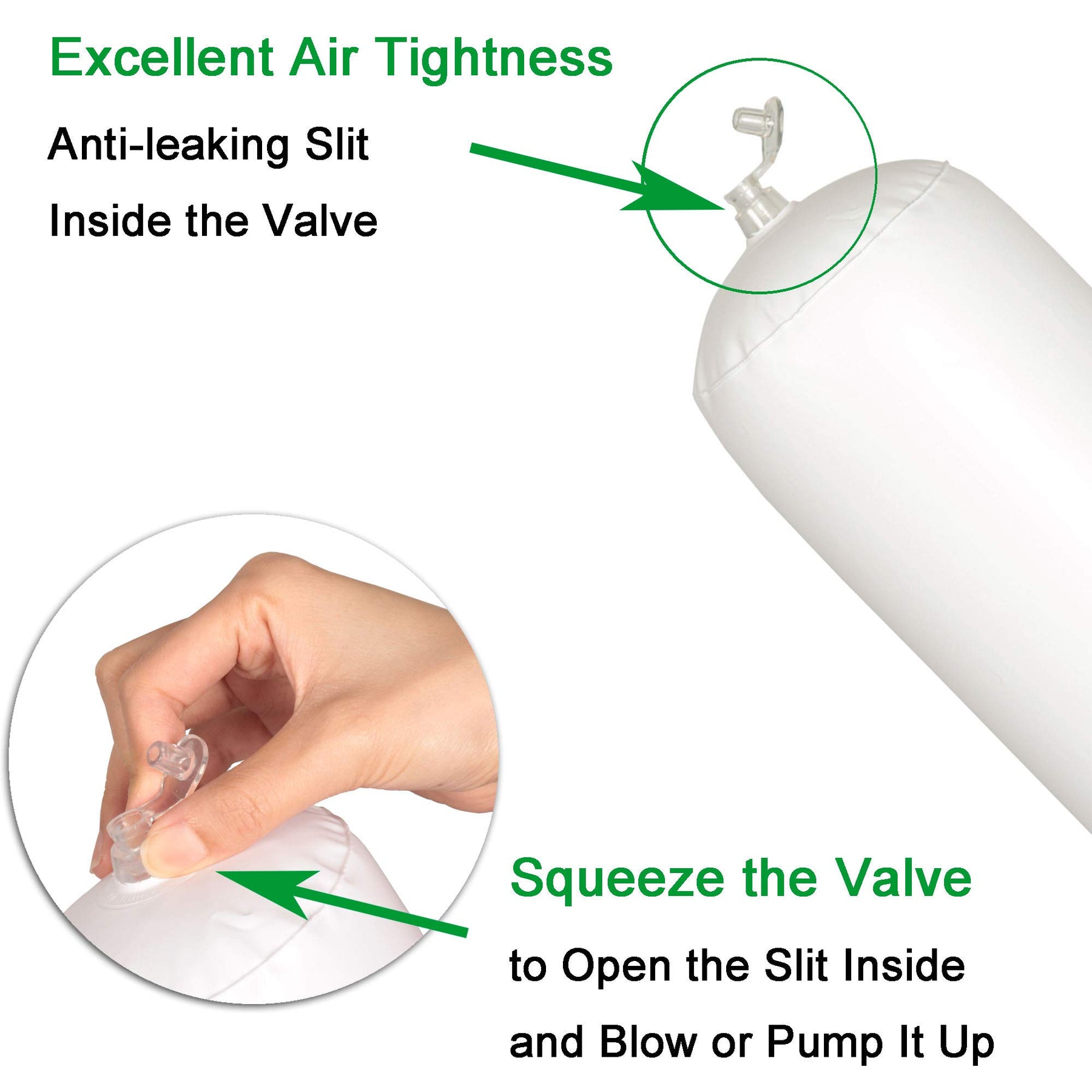 - Unique Anti-leaking Design - Our tube is specially designed with an anti-leaking slit which allows it to last longer than other tubes in the market when inflated. Please squeeze the valve with your fingers to open the slit and blow air to inflate the tube.