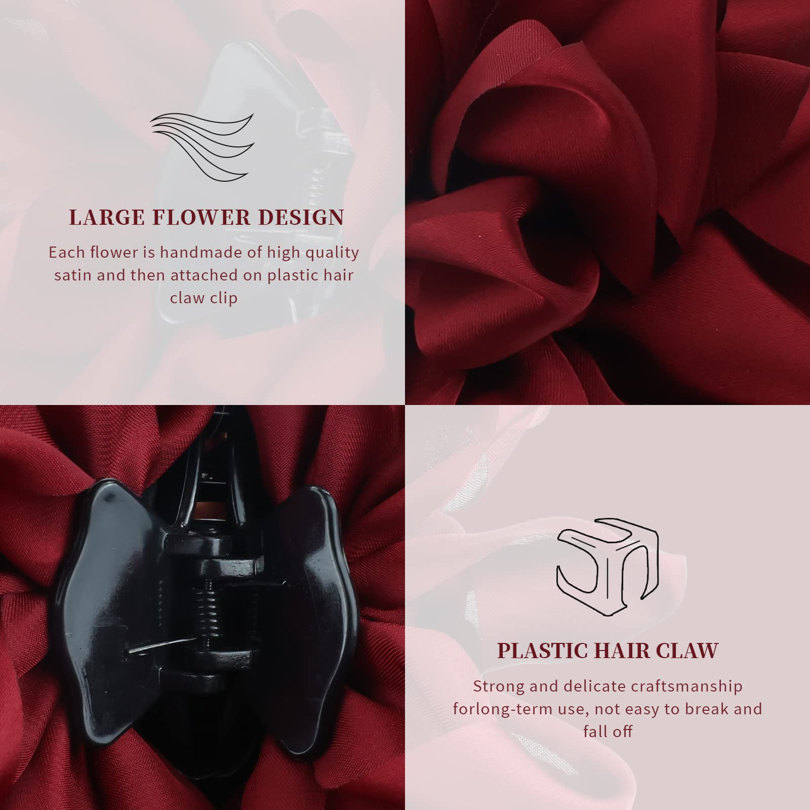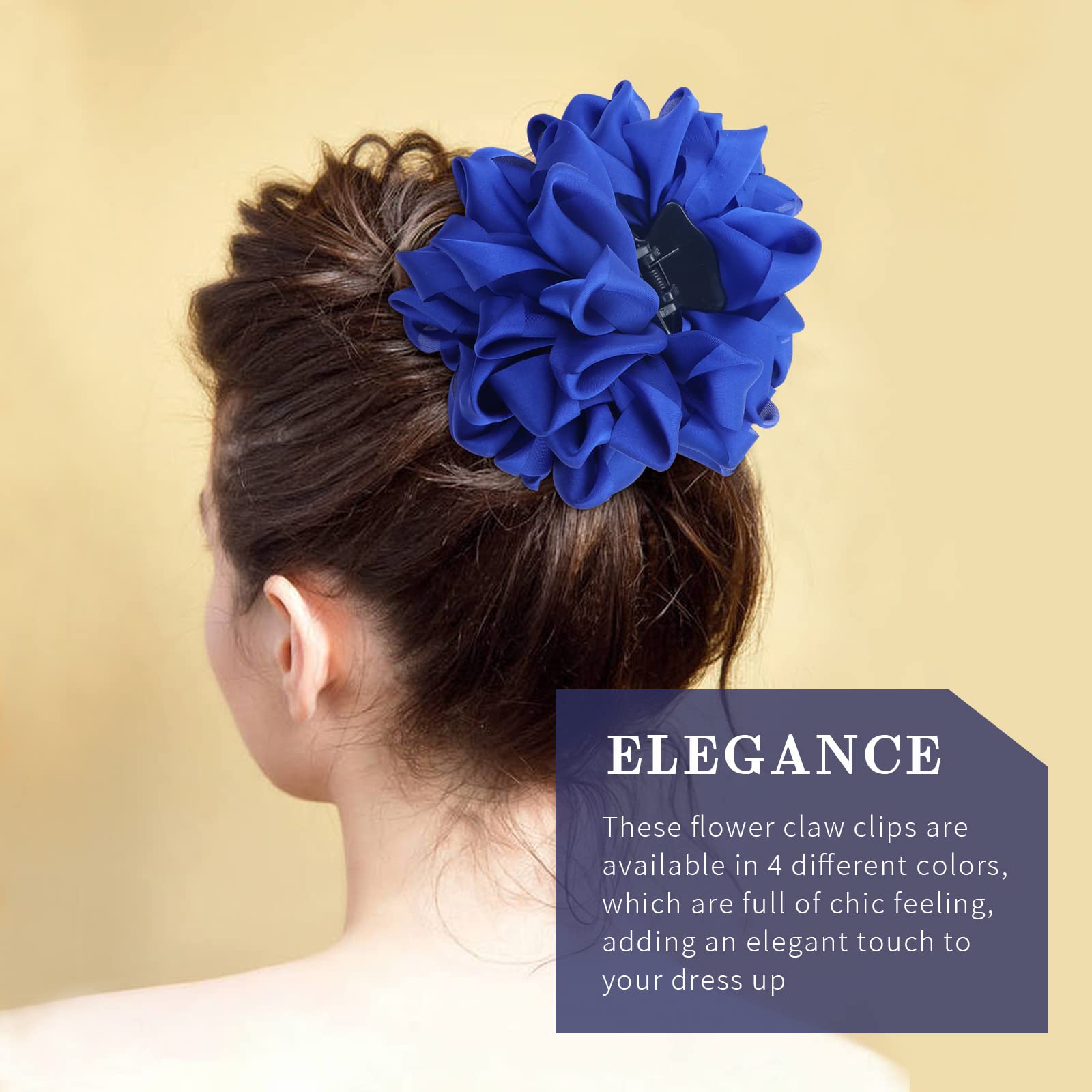 - Multipack: You will get 4 pack flower plastic claw clips, includes wine red, black, royal blue and green colors. the pack will satisfy you all need to match hair color, and daily outfit, or add glamour to your hairstyles.