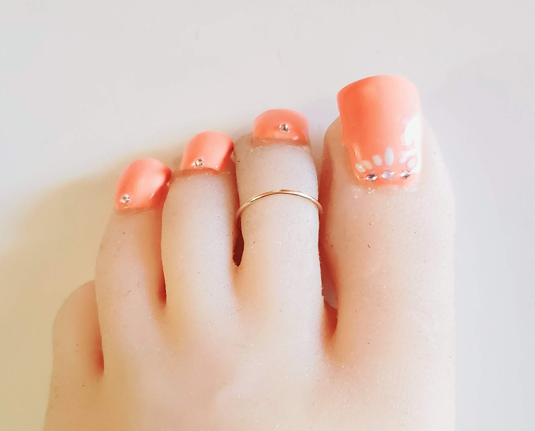 - Gold Toe Ring 14K Gold Filled 1mm Thin Plain Band Simple Minimalist Adjustable Size 3