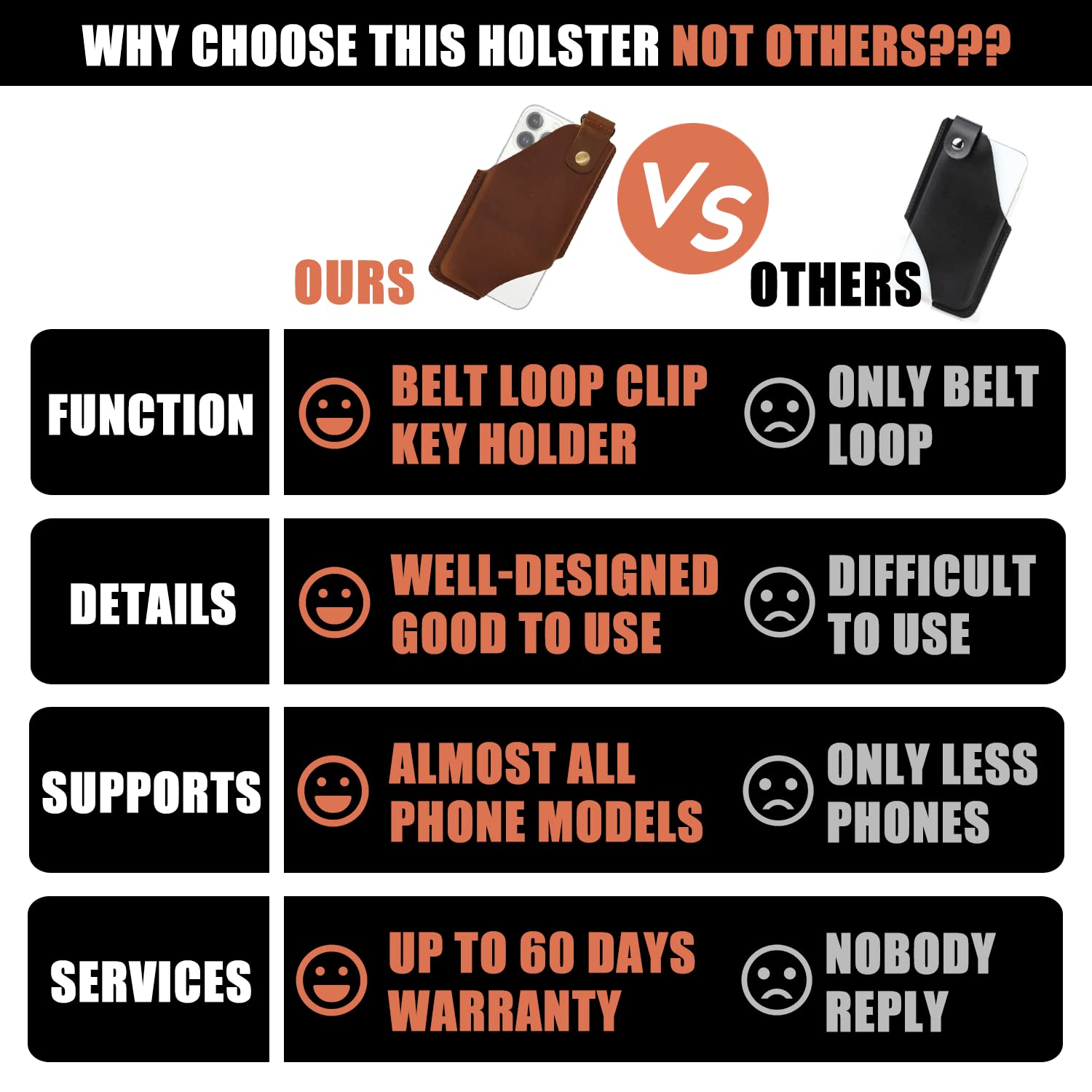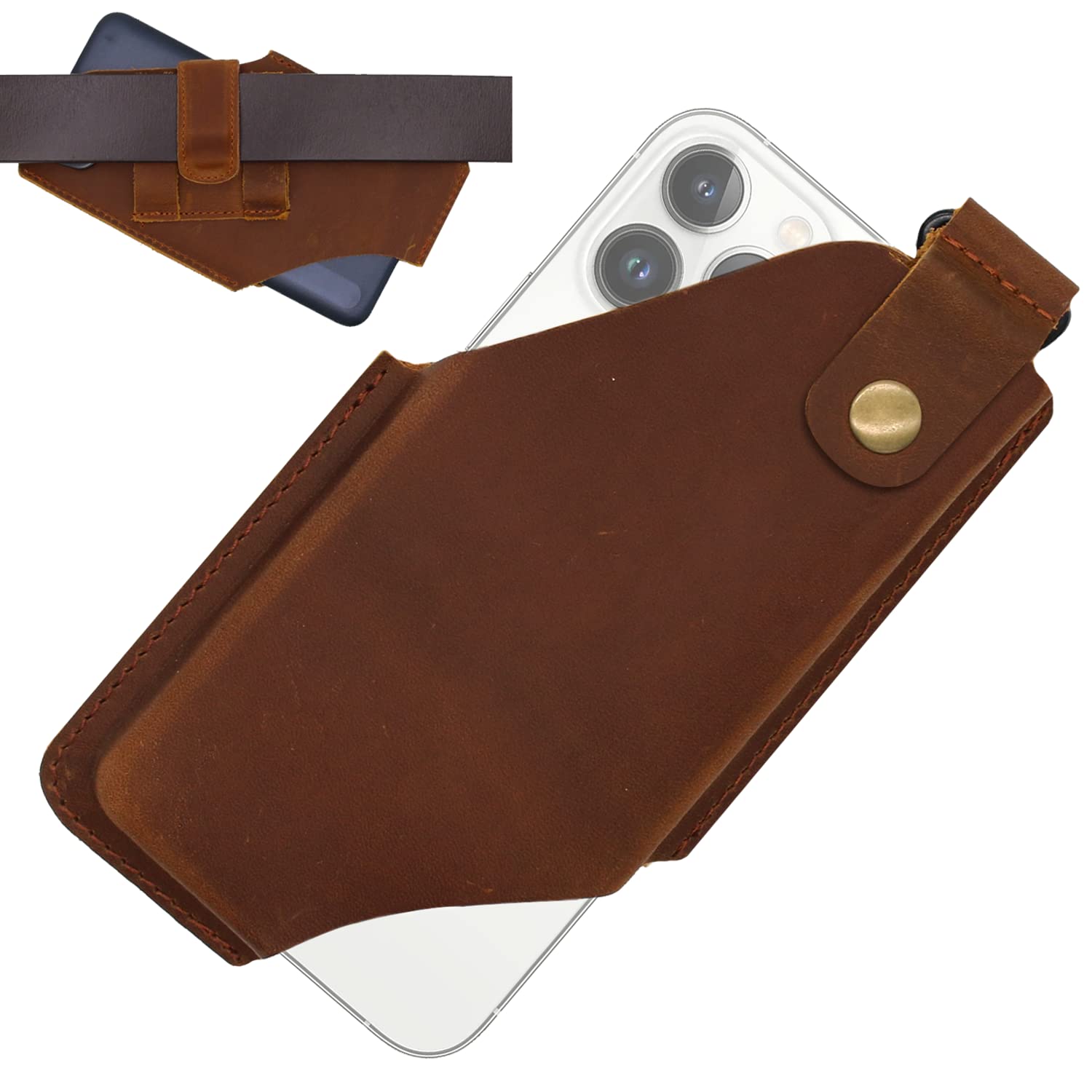 - Original Holsters – Leather Cell Phone Holster for Men Belt Phone Pouch Cell Phone Belt Holder, Perfect for Father Birthday Valentine Gift for Husband Boyfriend, Brown, with Clip Ring by LOLIPOUP
