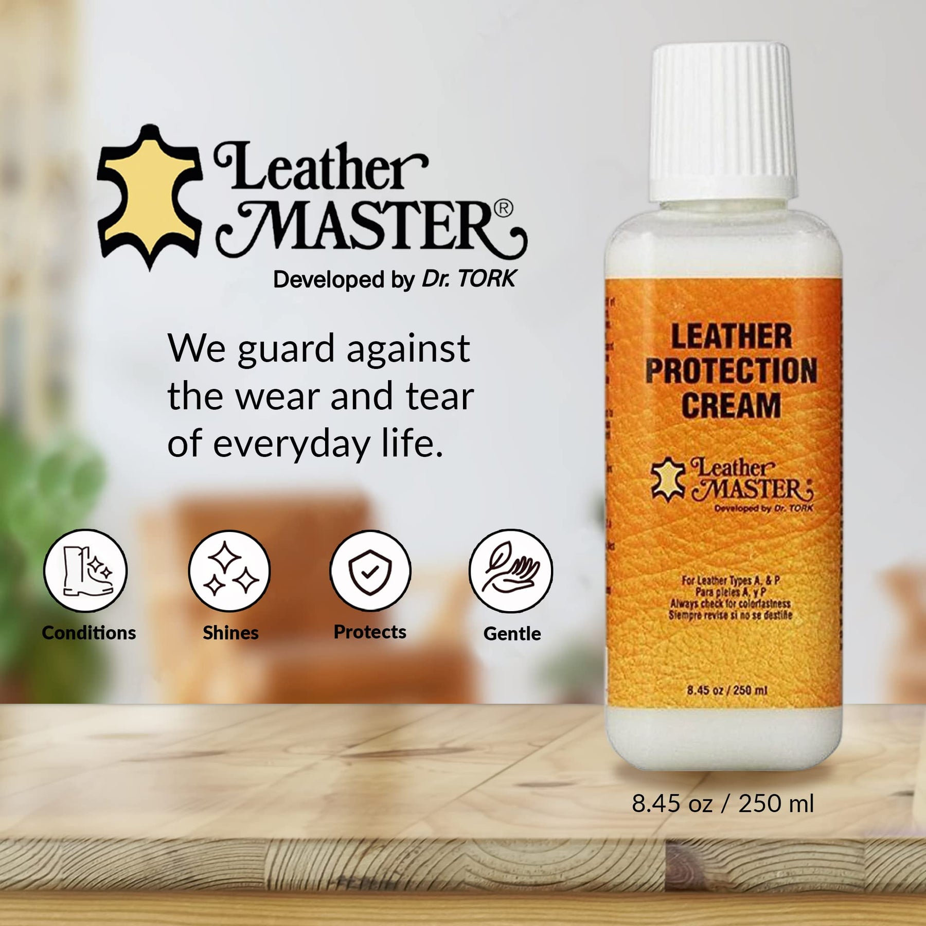 - Original Leather Care – LEATHER MASTER 250ML Leather Protection Cream - Leather Cleaner and Conditioner for Couch Clothes Purses Shoes Boots Car Leather Water Based Formula by Leather Master