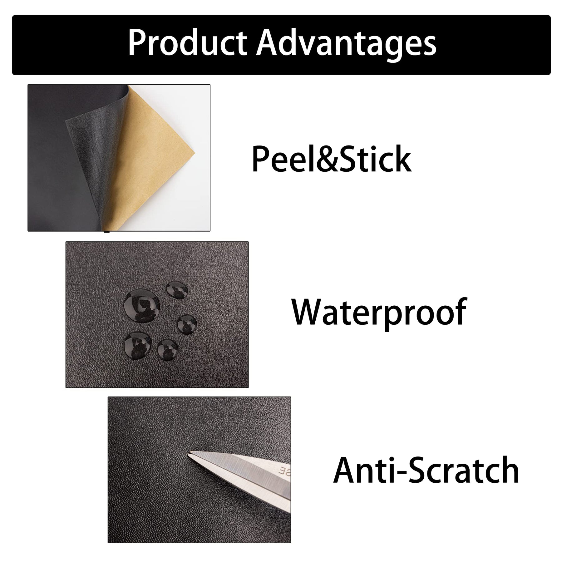 - Color and Material: Black, leather repair tape selects 100% high quality leather, Skin-friendly, soft, comfortable to use, with wear resistance, dirt resistance, easy to clean and other characteristics, last for a long time, won't leave scratches.