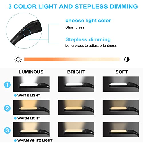 - CHANGE 3 COLOR TEMPERATURES&STEPLESS DIMMINThis book light for reading in bed has 3 color temperatures to choose from: white light, warm light, and warm white light. The brightness of each color temperature can also be adjusted. You only need to long press and hold the switch to adjust the brightness of the color temperature. You can adjust the color temperature and brightness according to your own preferences and usage scenarios.