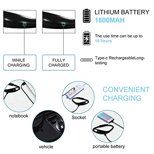 - RECHARGEABLE AND LONG-LASTING USEThis reading lights for books in bed has a built-in 1800 mAh battery. You can re-use it by recharging, so you no longer waste money on the battery and reduce the generation of battery waste. It is environmentally friendly and simple. The use time is about 10 hours after the battery is fully charged.
