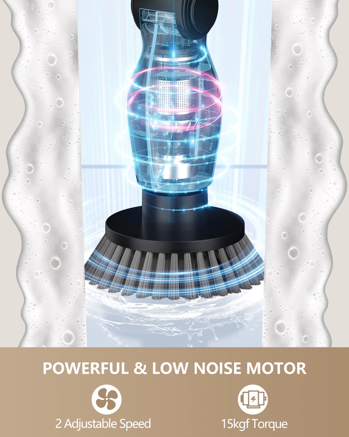 - ?High Torque & Low Noise Motor?Leebein YMG-818 spin scrubber can help you remove stubborn dirt and stains effortlessly and efficiently. Up to 400RPM, 15kgf torque, 55db low noise, Leebein power scrubber features a high-performance motor for deep cleaning, which is much higher than the average of other shower cleaning brushes. There are two spin speed modes to meet your different cleaning needs. Now cleaning becomes easy!