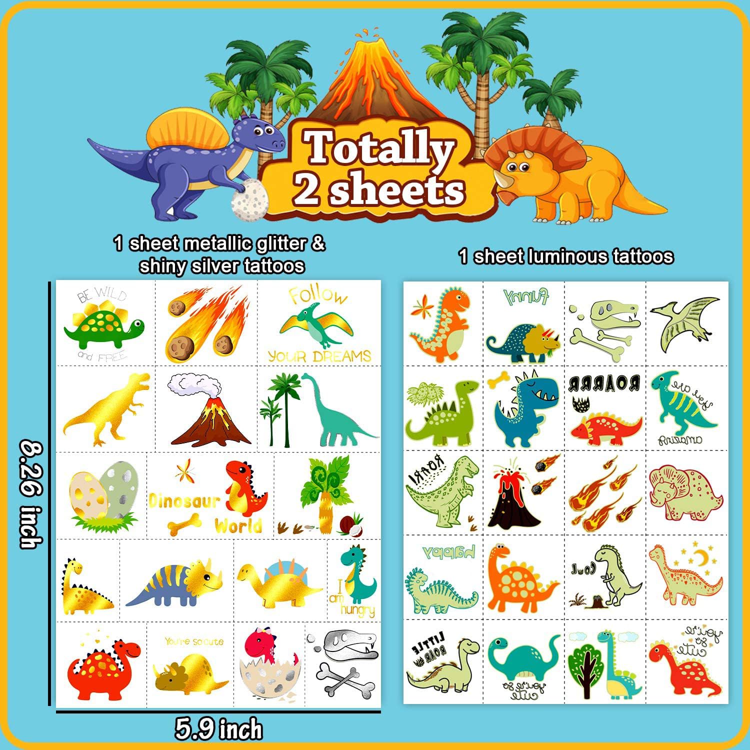 - Original Temporary Tattoos – Dinosaur Temporary Tattoos for Kids, Dinosaur Stickers, Dinosaur Birthday Party Supplies Decorations (37 Styles Glow + Metallic Glitter) by Leesgel
