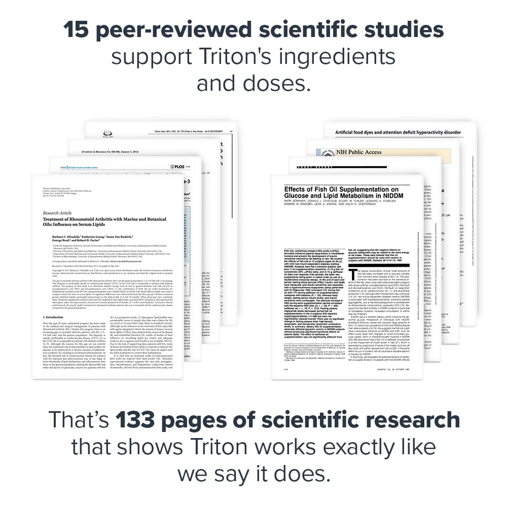- SUSTAINABLY SOURCED OMEGA 3 SUPPLEMENTS. Triton is omega fish oil produced from deep-water Peruvian anchovies and sardines caught by fisheries approved by Friend of the Sea.