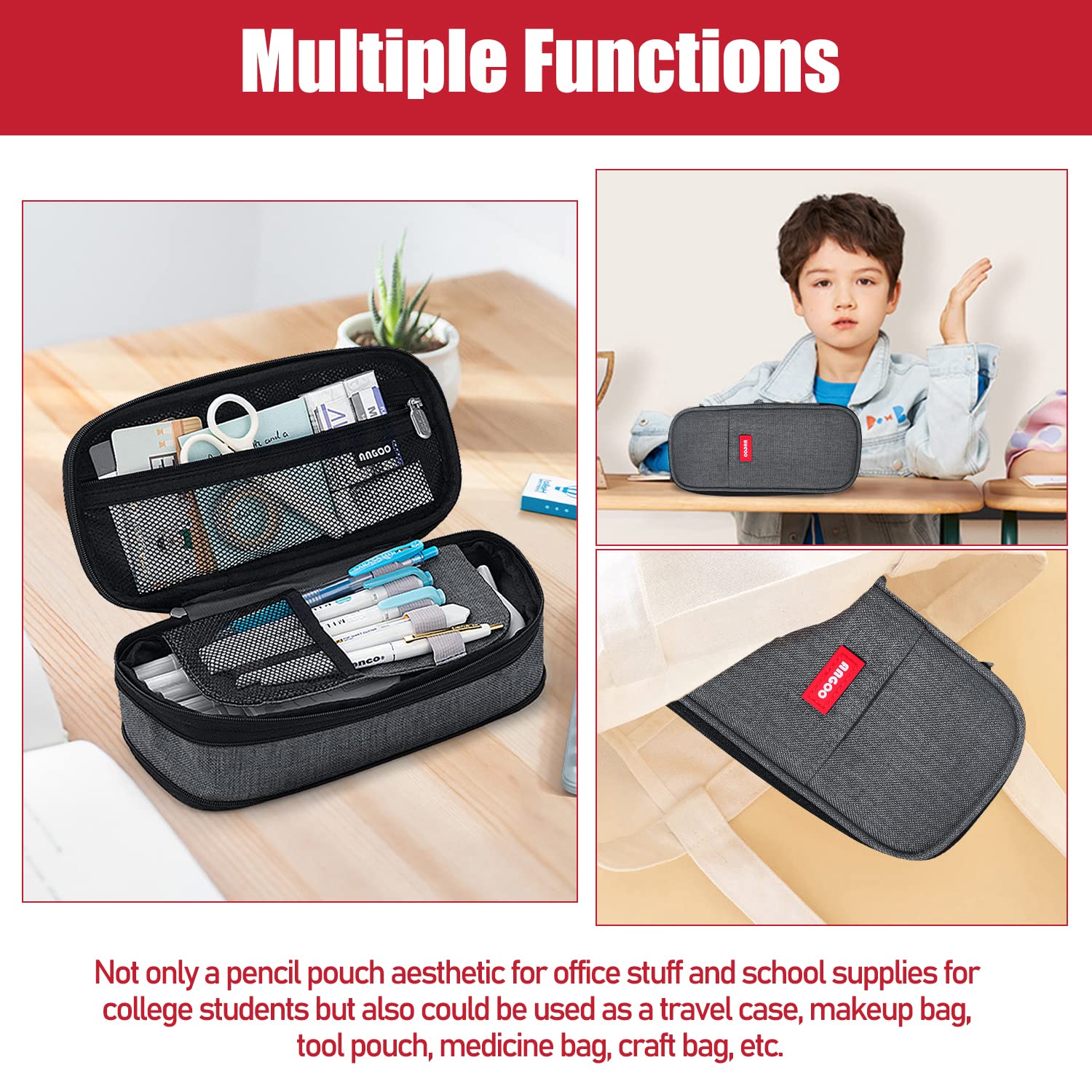 - Multiple FunctionsNot only a pencil pouch aesthetic for office stuff and school supplies for college students but also could be used as a travel case, makeup bag, tool pouch, medicine bag, craft bag, etc. Its compact size and weight make it easy to carry around. Multiple compartments allow you to achieve better functional division.