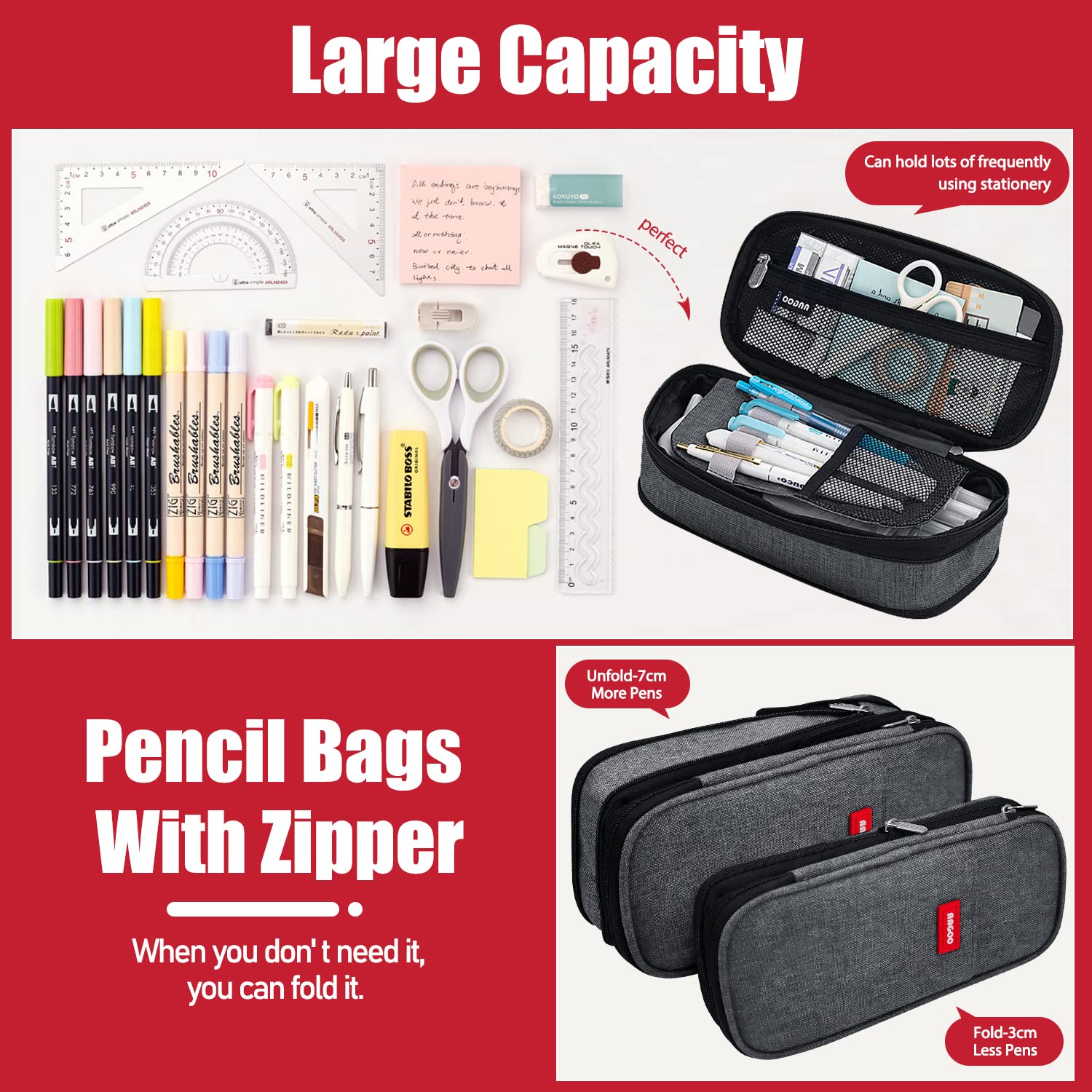 The big pencil case is used for storing and organizing pens, pencils markers, and other small items such as Scissors, rulers, calculators, erasers, Binder Clips, Charging lines, etc.