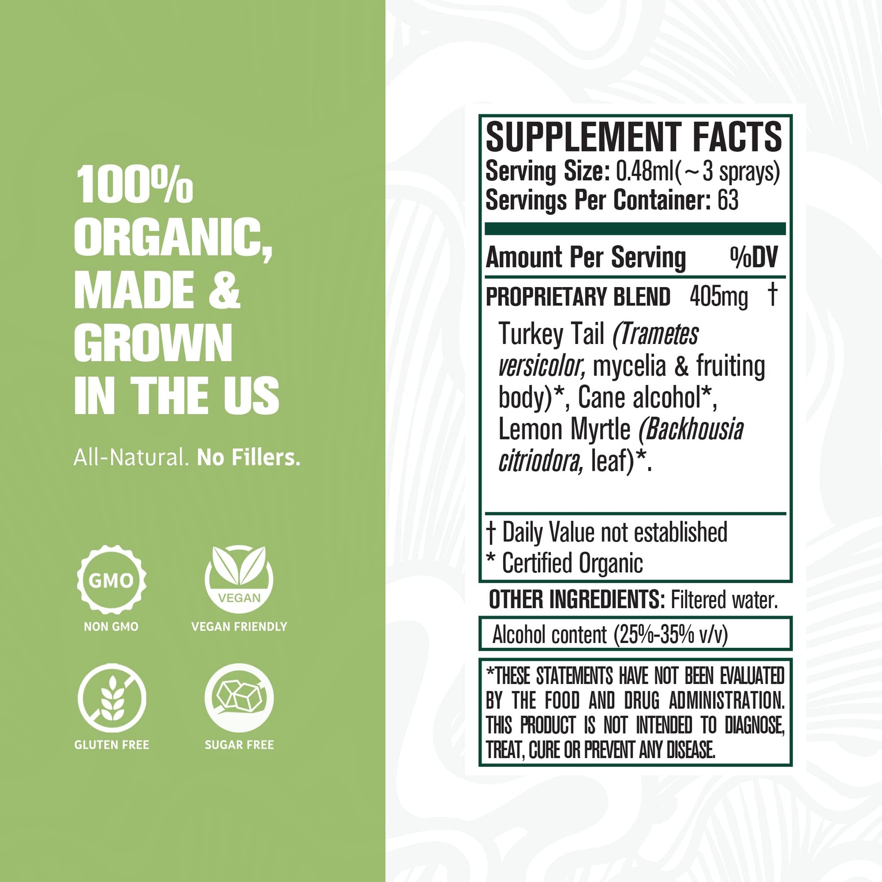 - Original Mushrooms – LIFE CYKEL Turkey Tail Mushroom Supplement Oral Spray with Lemon Myrtle - 100% Organic Turkey Tail Mushrooms- Immune Support Supplement, Immune Defense, Antioxidants, Vitamin C, Made in The US, 1 oz by Life Cykel