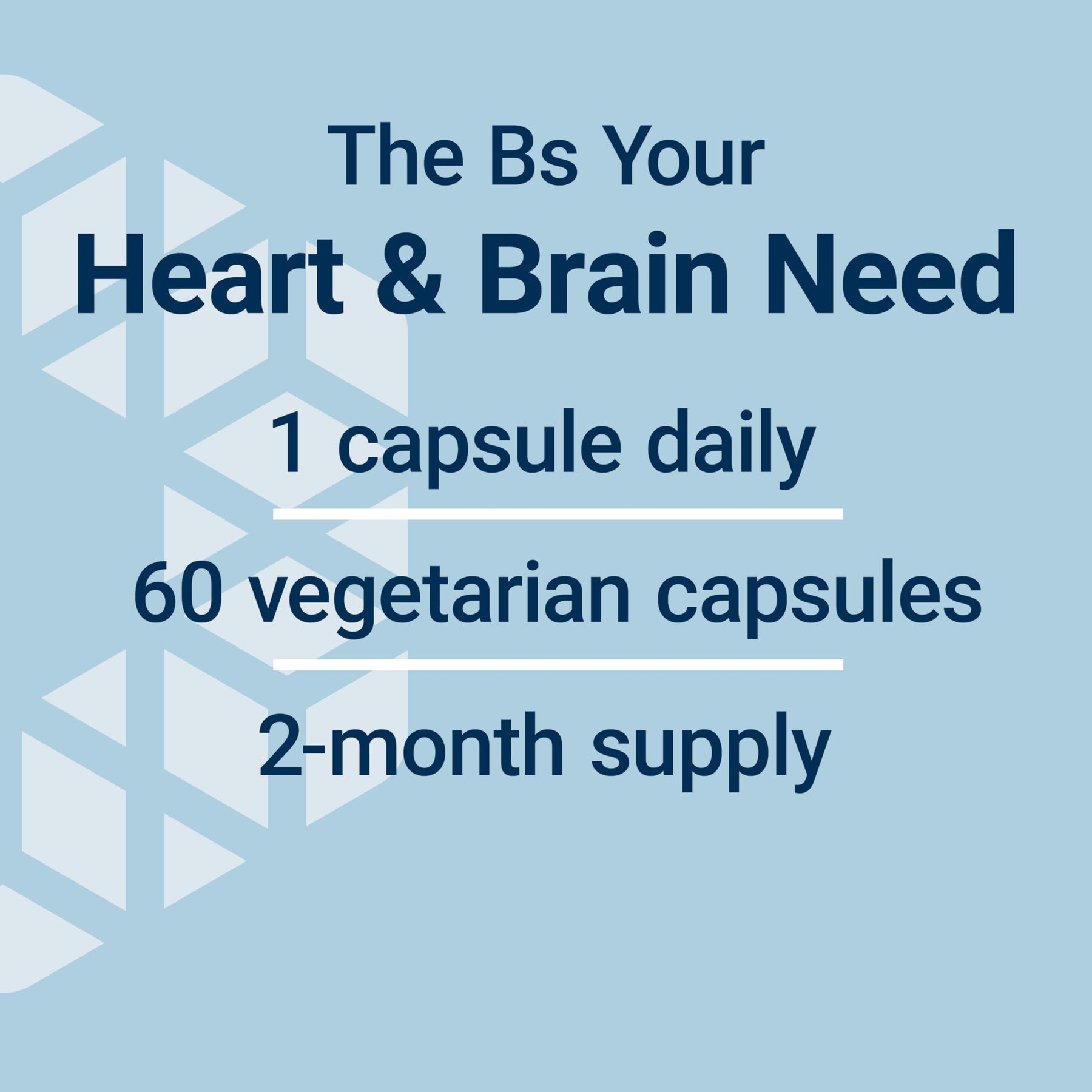 - A WIDE-SPECTRUM OF HEART AND BRAIN SUPPORT - A B vitamin supplement specially formulated for your heart and brain. It helps your body maintain heart-healthy levels of homocysteine already within normal range. Homocysteine is a natural compound produced by your cells. But as we age, homocysteine can begin to build up in the bloodstream, affecting cardiovascular health, cognitive function and more