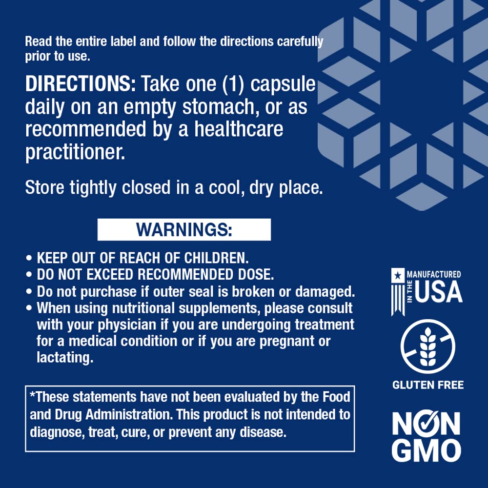 | serving recommendation | Take one (1) capsule daily on an empty stomach, or as recommended by a healthcare practitioner. |