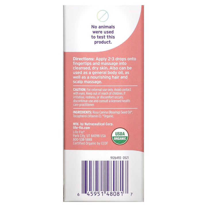 - The Life-flo Difference – Manufactured in our GMP-certified facility in Utah and never tested on animals, our certified organic, Pure Rose Hip Seed Oil is lab tested to ensure the purity of its ingredients, and comes with a 60-day money back guarantee.