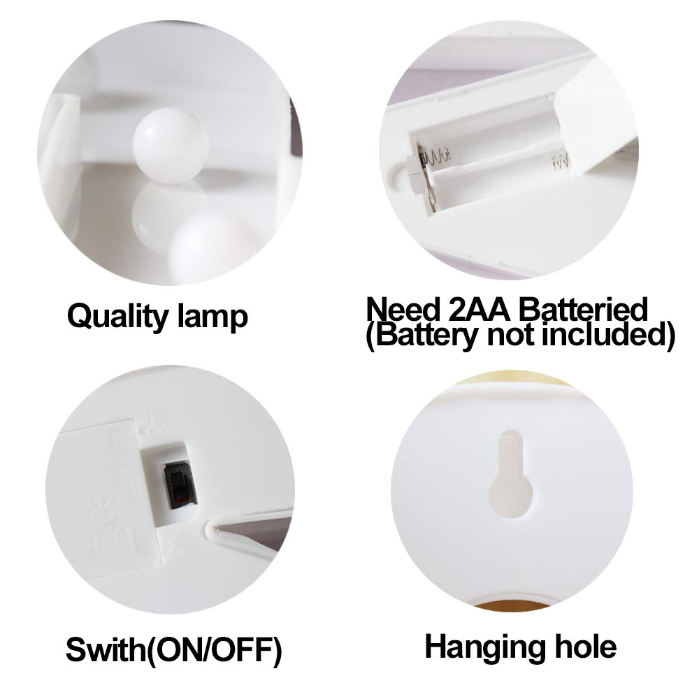 - ConvenienceThe size is about 15cm*4.5cm*22cm(5.9’’*1.78’’*8.67’’). This marquee lights are portable, it can be hung on walls and can make it stand on the table. Need 3 x AA batteries so they will not need to be plugged into an electrical outlet.