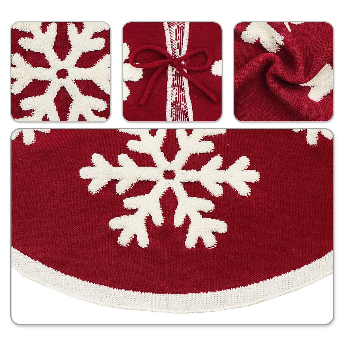 - Warm Christmas Decor: LimBridge knitted 48 inch Christmas tree skirt , wine red tree skirt with snowflakes, for 5 to 7 feet Christmas trees.