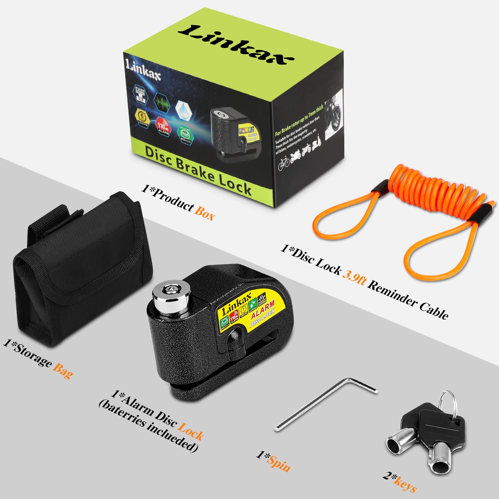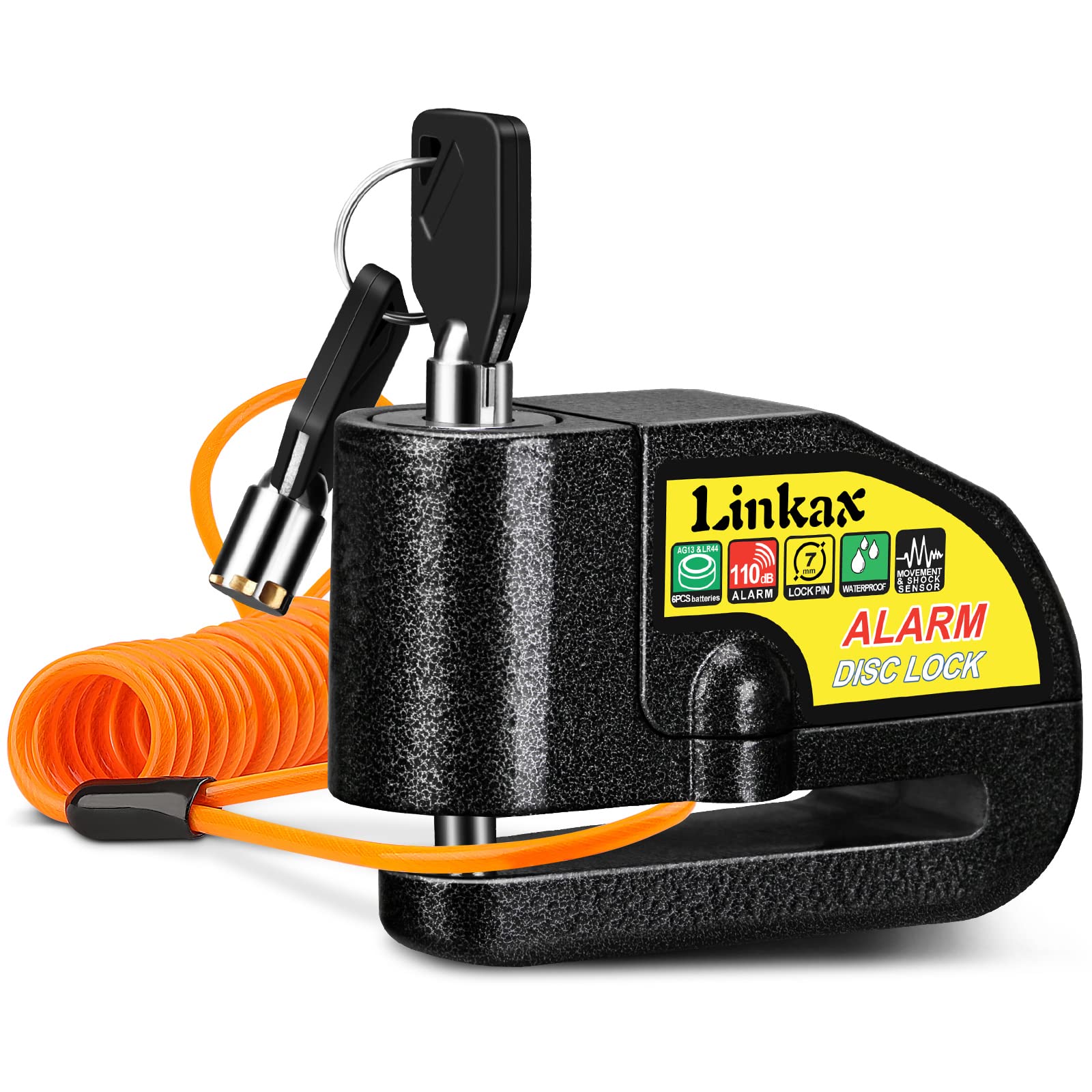 - Original – Motorcycle Alarm Disc Brake Lock, Accesorios para Motos, Motorcycle Locks Anti-Theft Security Wheel Lock 110dB 7mm Pin with Reminder Cable and Carry Pouch for Motorbike Dirt Bike Scooter by Linkax