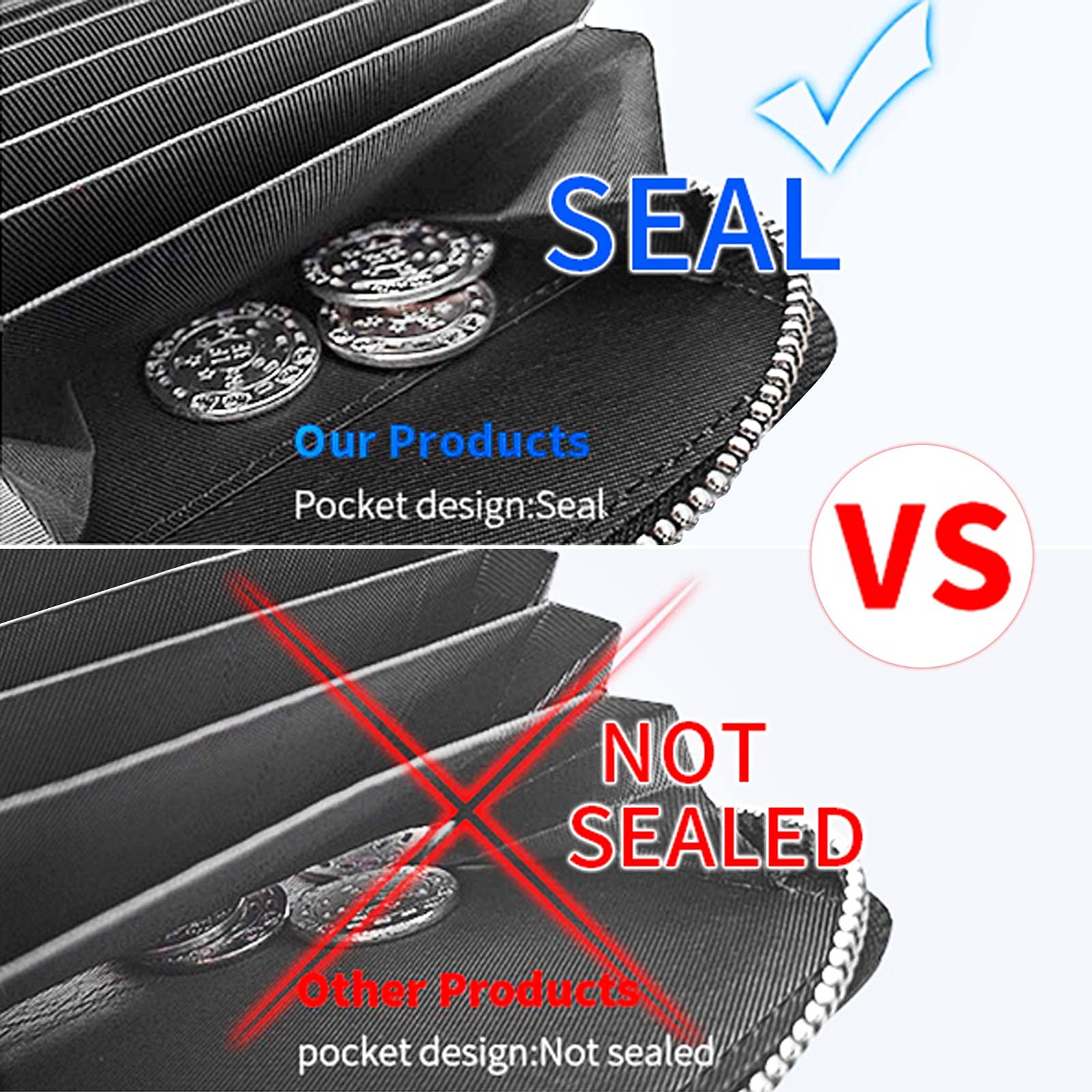 - Special Design: Credit Card Protector.RFID Blocking Designed Lining Keeps Your Vital Information Secure. Be Safe and Protected from Electronic Pick Pocketing.